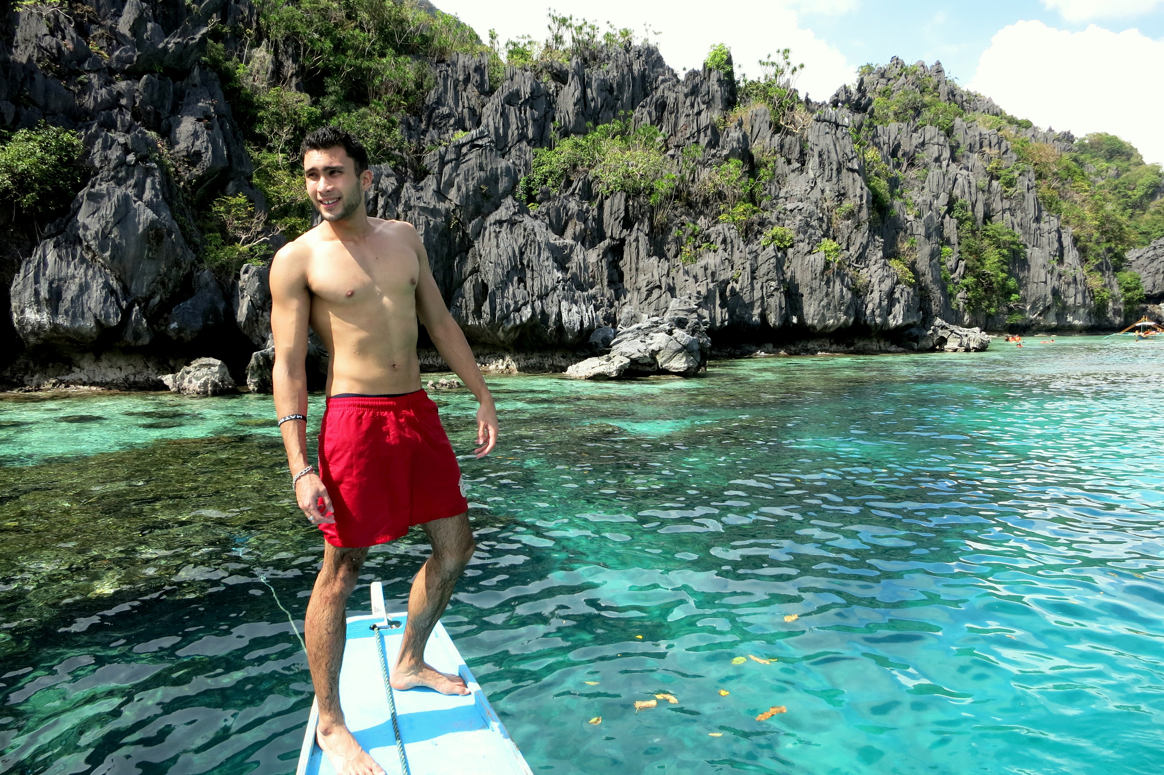 Après plus de 12h de trajet le lendemain, celui-ci alliant bus, taxi, avion, van, touk-touk et j’en passe (oui oui, on enchaine ; même le paradis se mérite), j’ai déjà la fierté d’être enfin une jeune Palawan qui s’apprête à défier la nature ces prochains jours. Hihi. Destination finale : El Nido, ce petit nid paisible où regorgent une centaine d’îles dans l’archipel de Bacuit, et qui offre des paysages spectaculaires. Entre autres, eau translucide, chaleur tropicale, faune et flore atypiques et du farniente en général.