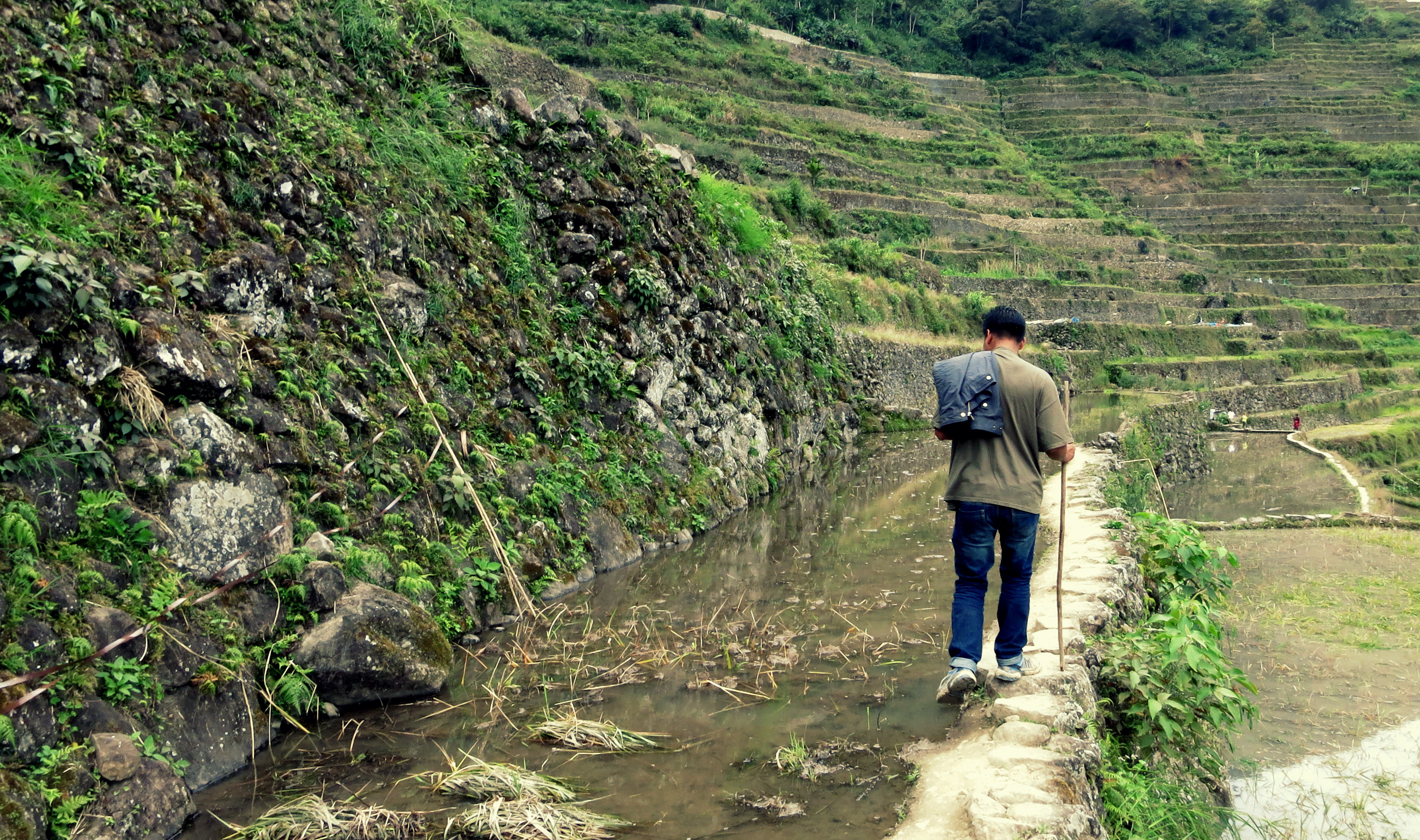 Anyway. Le corps bien amoché, ô joie les secousses et bruits de moteur, le plus dur reste à faire : réveiller mon cerveau et réaliser qu’il faut marcher encore une bonne heure et demie pour rejoindre les terrasses. Je le disais : ici, tout se mérite. 6h de voiture + 1h de touk-touk + 2h de descente = accès aux terrasses restreint et limité aux personnes courageuses. Sans chaussures prévues. Sans imaginer que les 416 marches descendues ne représentent qu’1/4 du trajet. Qu’il est déjà 14h et que la nuit tombe 3h plus tard.