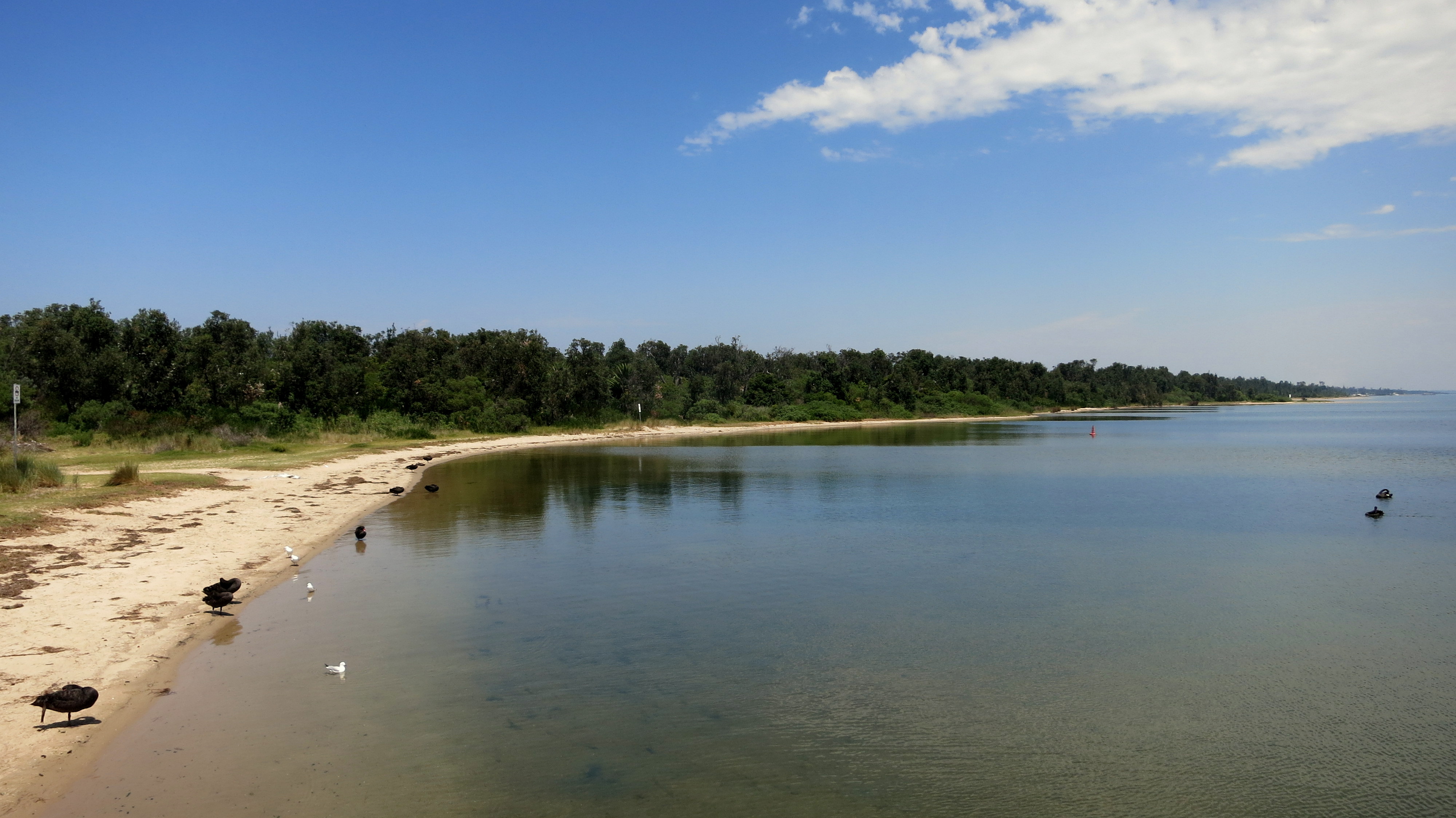 Autre excursion également, en compagnie de Kahlie qui par chance ne travaillait pas ce jour-là : de retour à Lakes Entrance, une station balnéaire connue pour ses multitudes de lacs qui forment une très belle mini-baie, avec quelques presqu’îles disposant d’une immense étendue de sable une fois celles-ci traversées. Surf ou détente, sport ou repos, ce n’est pas la place qui manque et il y en a décidément pour tous les goûts. Cela dit, une fois que l’on reste 3h sur la plage, il ne reste plus grand-chose à faire là-bas, surtout lorsque la haute saison se termine et que l’on ne dispose pas de voiture. Le plus intéressant de Lakes Entrance réside sans doute dans le fait que l’on puisse admirer la vue d’en haut, mais le bus nous ayant amené directement au petit centre-ville, nous n’avons pas eu le courage de marcher sous une chaleur étouffante. Pour vous donner une idée, je vous mets donc ici une photo qui date de 2008 ; j’avoue que j’ai vraiment été paresseuse ce jour-là, peut-être parce que je m’attendais à être de nouveau émerveillée comme je l’ai été jusqu’ici en retrouvant des endroits familiers. Je garde donc de Lakes Entrance un bon souvenir mais suis convaincue que Seaspray vaut définitivement plus le coup pour se prélasser au soleil tout en évitant les touristes.