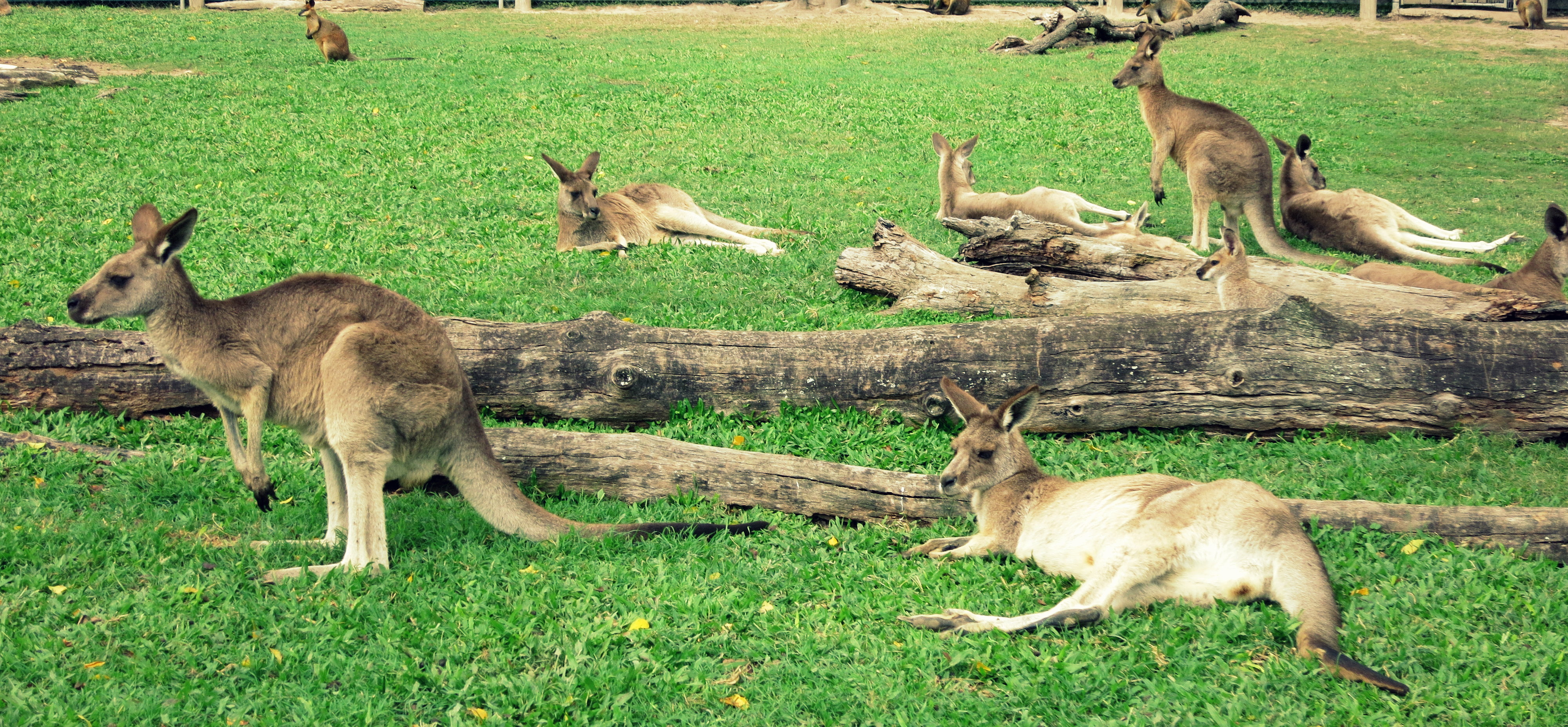 Anyway, nous nous essaierons à l’activité préférée des visiteurs du parc : le Kangourou Selfie. Tentative limitée par la nourriture rapidement engloutie. J’en retirerai quelques bons clichés cela dit.