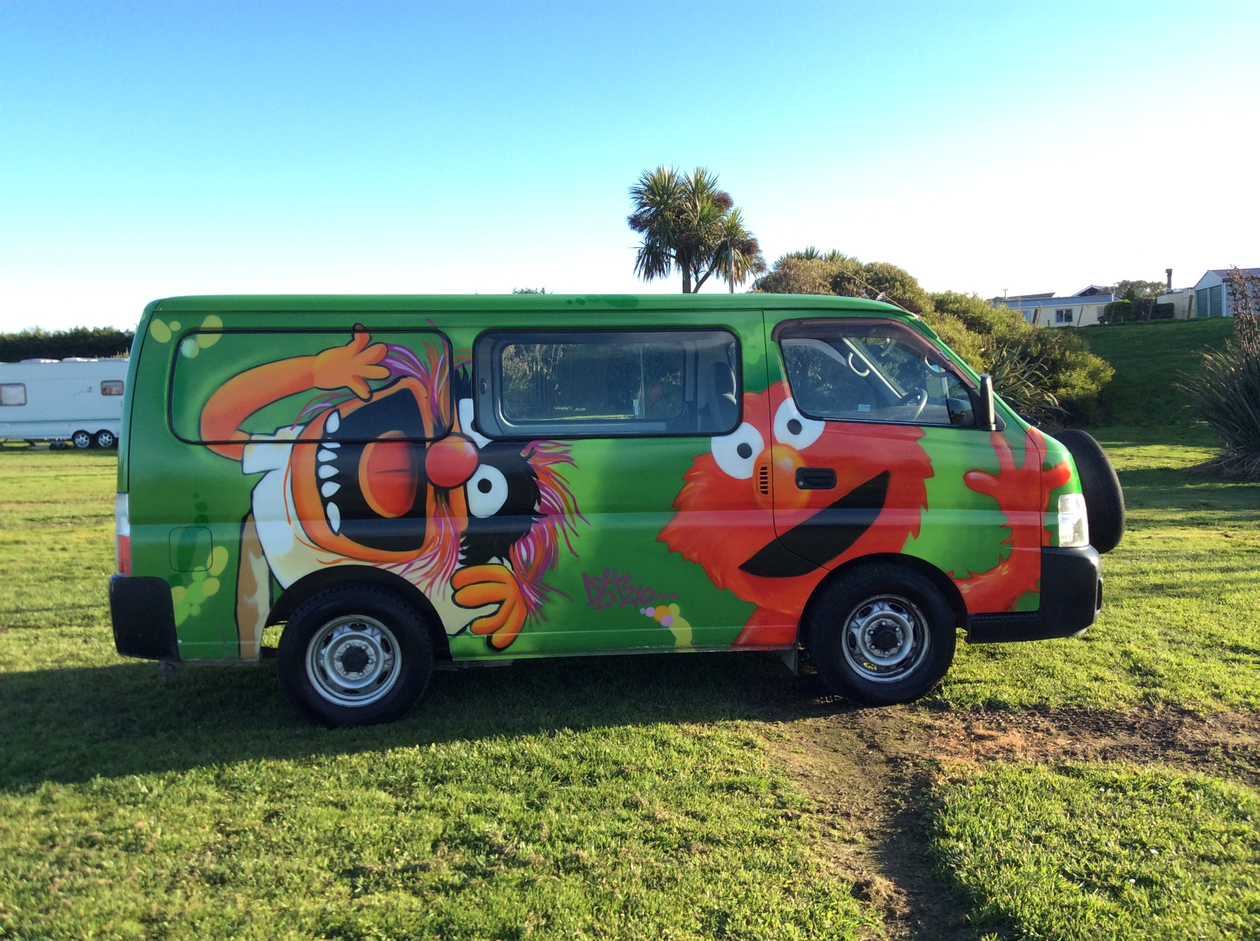 Le grand jour est arrivé, départ Auckland et arrivée Christchurch ! Pas encore en van, nous trichons et prenons l’avion : c’est de l’ile du sud que nous commencerons notre périple. Vu du ciel, les montagnes impressionnent déjà …et le temps qui nous accueille l’est encore plus. Un grand ciel bleu, pas l’ombre d’un nuage; voilà de quoi nous rassurer pour cette journée où tant de défis nous attendent. En premier, la prise en main du van, la signature des papiers et la certification que nous n’aurons pas d’accident…soit. JB n’ayant absolument jamais conduit en ville, c’est moi qui m’y colle. Là, il s’agissait clairement de choisir le moins pire des deux, étant donnée notre inexpérience. Grosse appréhensions, mais premiers essais concluants, entre deux ruelles. Le plus intimidant étant sans doute de ne pas savoir où aller. Finalement, la boîte auto aidant beaucoup, je prends rapidement mes aises. Même rouler à gauche s’apprivoise facilement !
