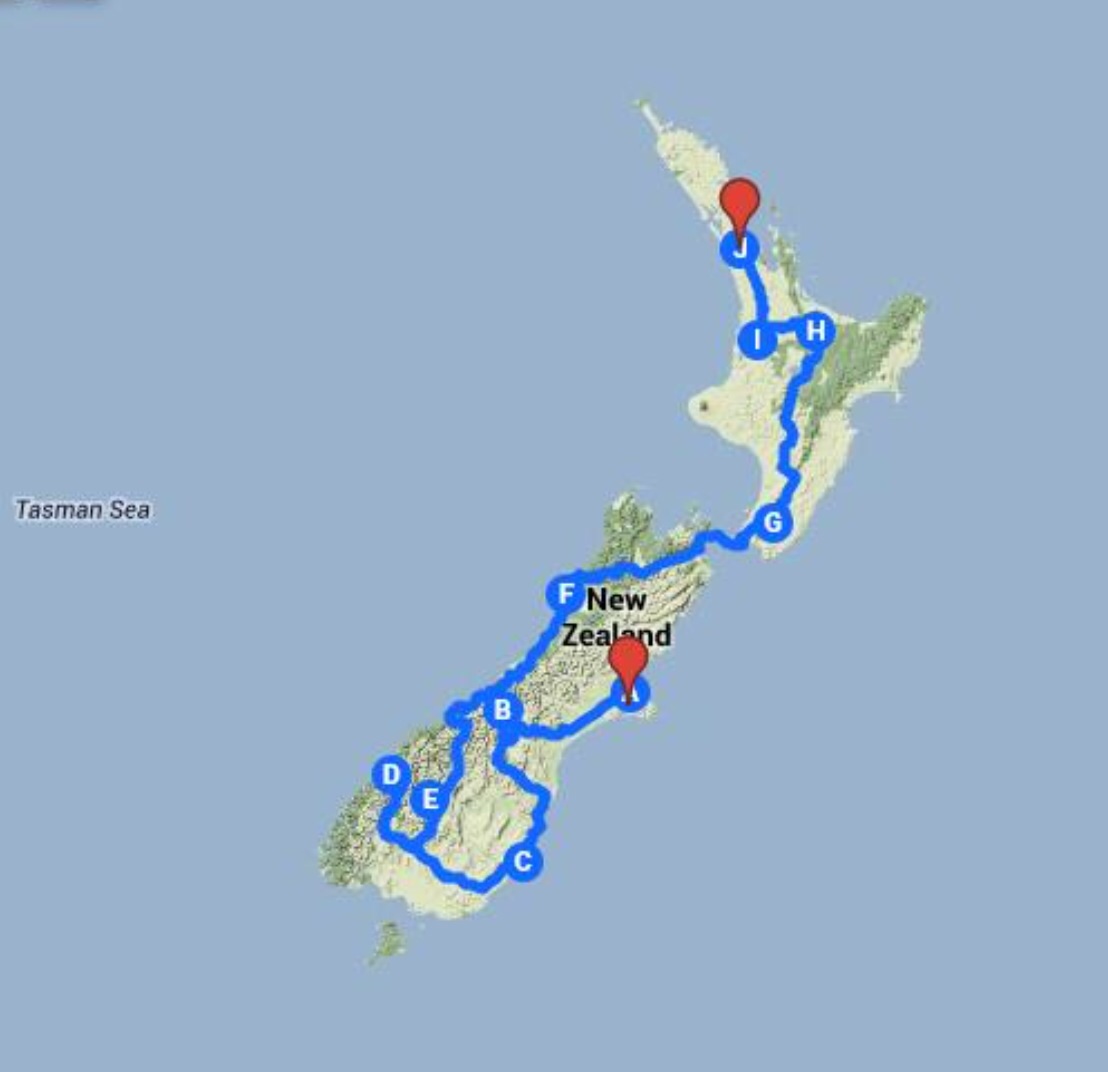 C’est avec JB, grand aventurier et habitué des sentiers que je vais séjourner dans ma prochaine demeure : le van ambiance 60s ! Pas vraiment rodés côté conduite, on verra ce que ça donne … En attendant, rapide aperçu de ce qui nous attend, départ Christchurch et retour à Auckland par la suite.