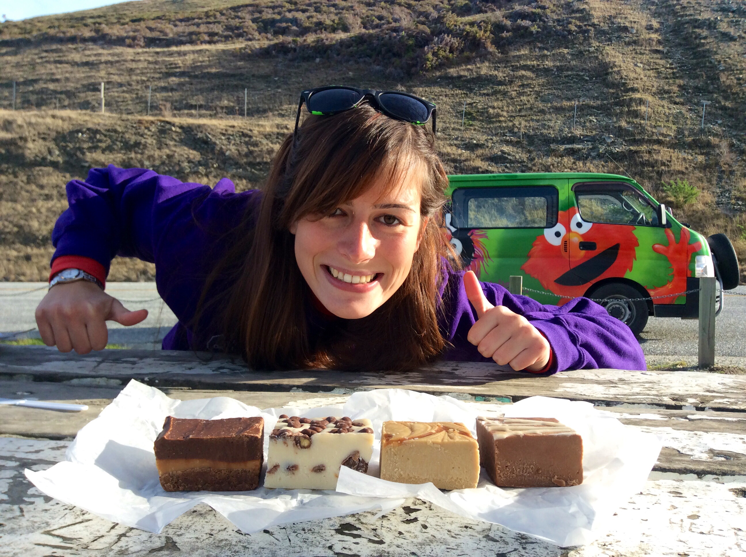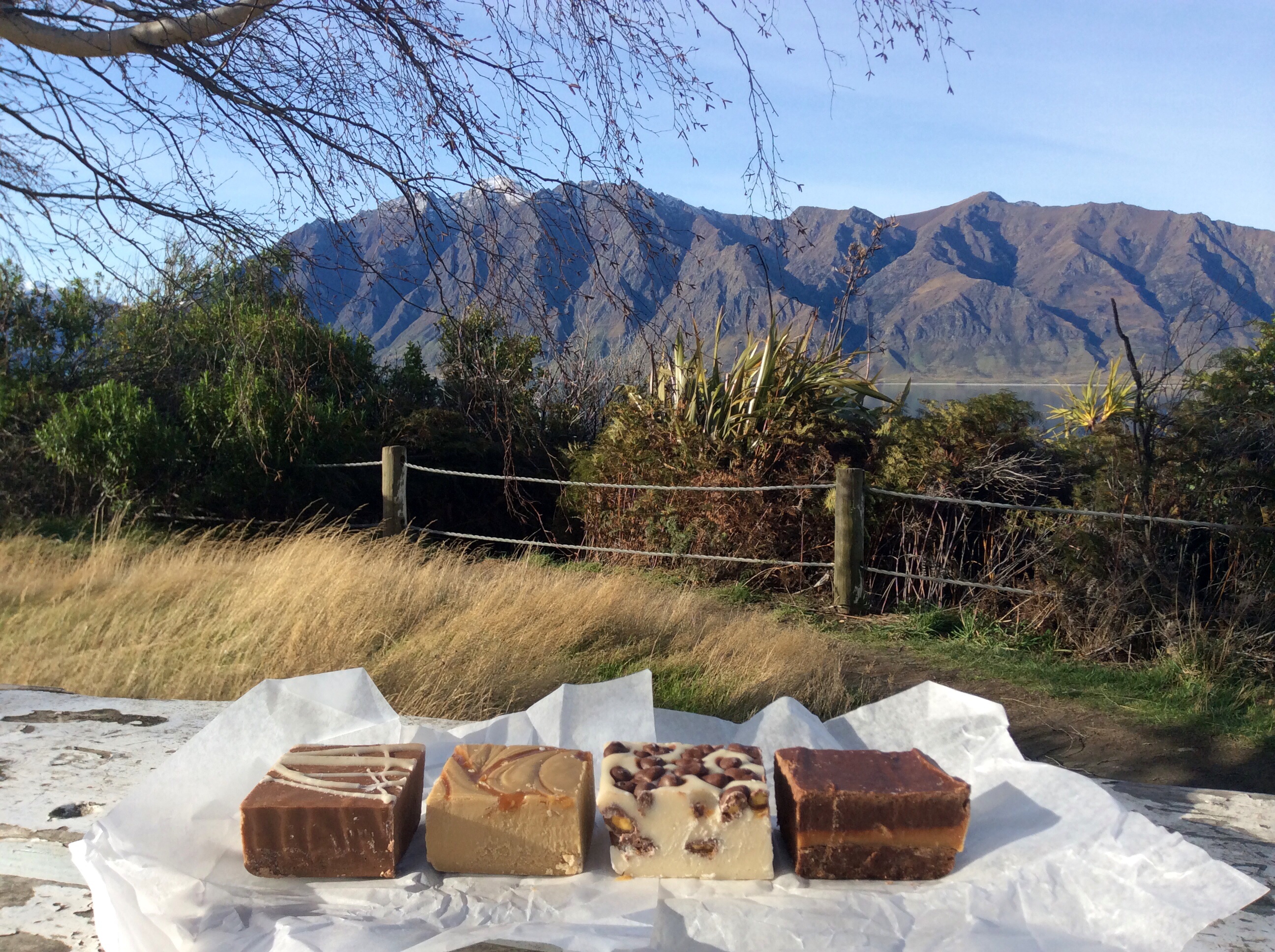 …enfin, quand je dis express…on aurait bien aimé ! Aujourd’hui, gros défi routier : plus de 350km à parcourir sur des petites routes sinueuses de montagne, partiellement fermées, alors que nous partons en retard. Avant de quitter Queenstown, passage obligé dans une boutique repérée des notre arrivée : the Remarkable Sweetness World, autrement dit le paradis de la gourmandise pour les aficionados de sucreries… mais surtout de chocolat !!! À peine rentrés que nos papilles gustatives sont en émois et que l’on s’imagine déjà en pleine dégustation.