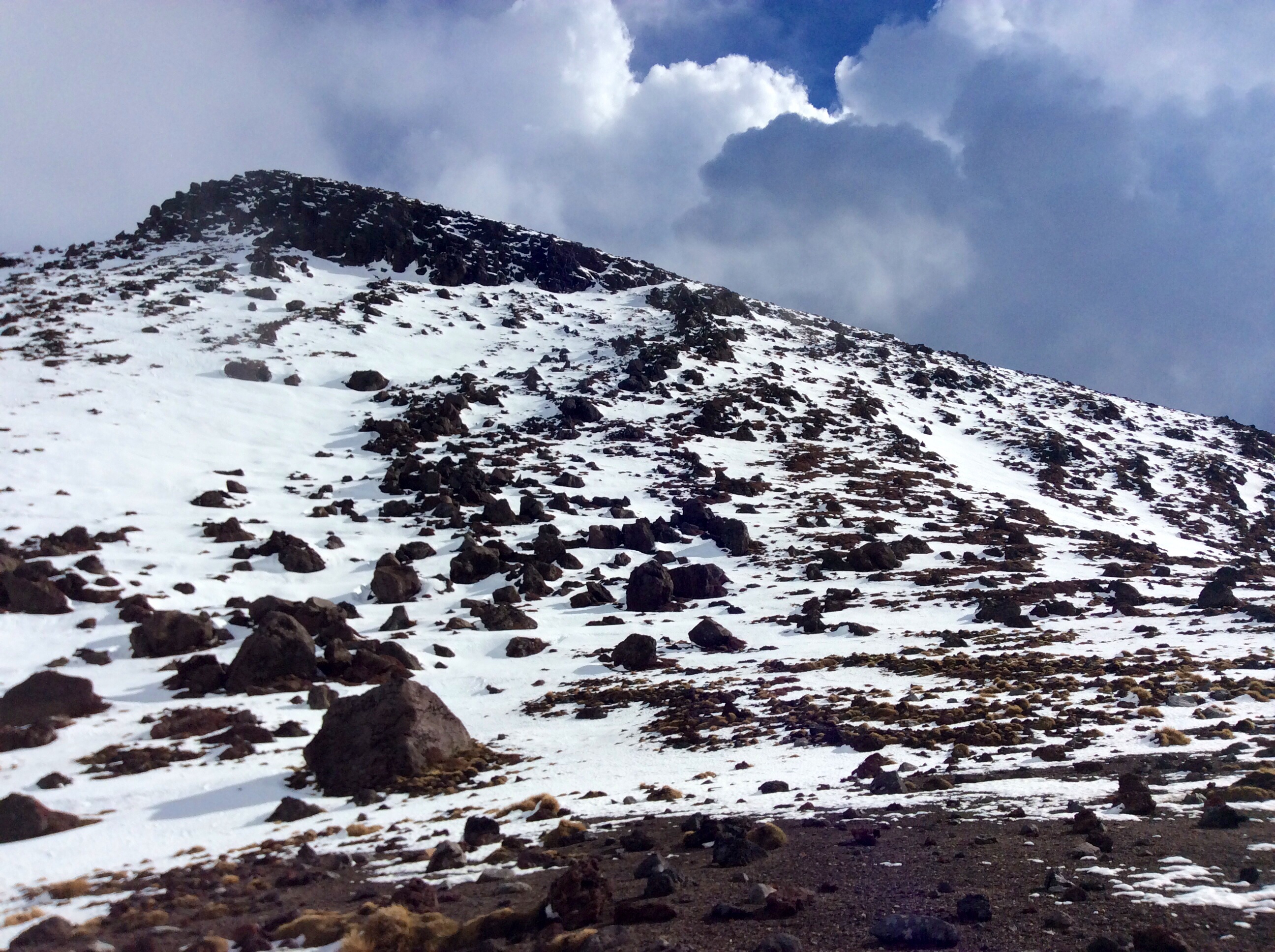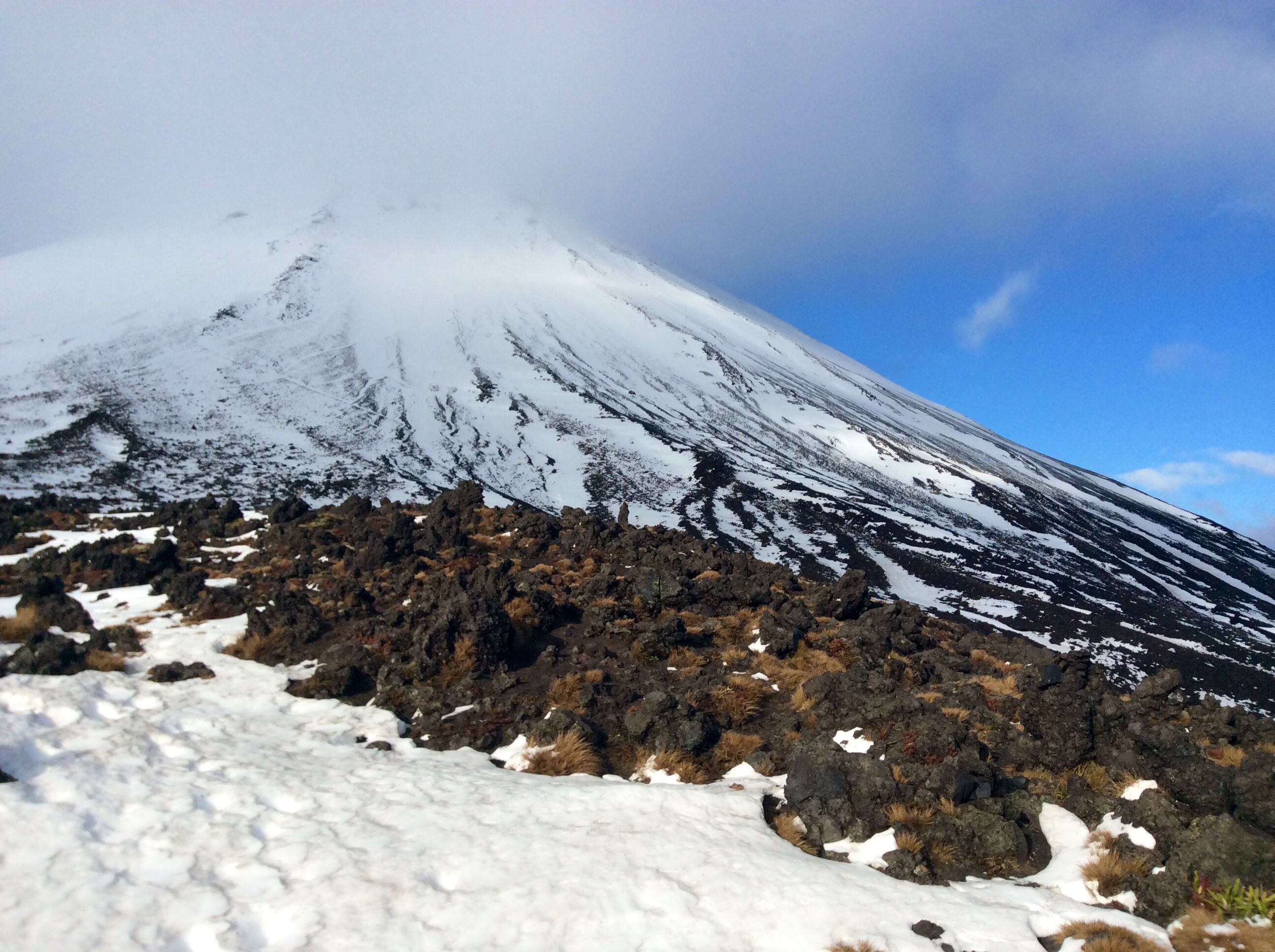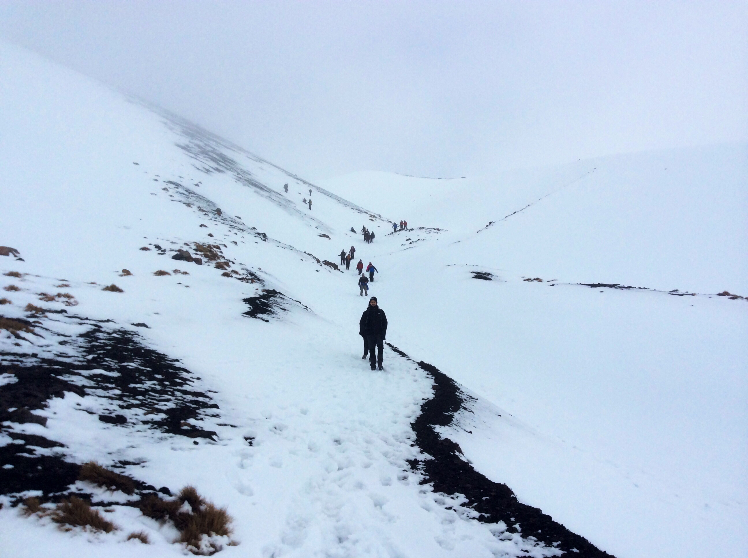 À tour de rôle, nous avançons donc petit à petit. D’abord sur 5km de plat, synonyme d’herbes sèches et de roches volcaniques, à l’image des plaines traversées la veille. La température y est plutôt clémente et la volonté dure comme fer. Puis vient l’ascension d’une partie du Mont, où je me serai largement fait distancer par JB, et ce malgré une arrivée dans les premières lignées. Parmi le groupe de 38 personnes, nous garderons un bon rythme de leader en général ! Quelques français croisés au passage, pour se donner du courage. Également pour partager un bon repas bien gelé, en plein sommet. Des cratères nous n’en verrons pas la couleur, ni même n’en devinerons la forme. Mais le spectacle est bien là tandis que nous restons quelque fois bouche-bée.