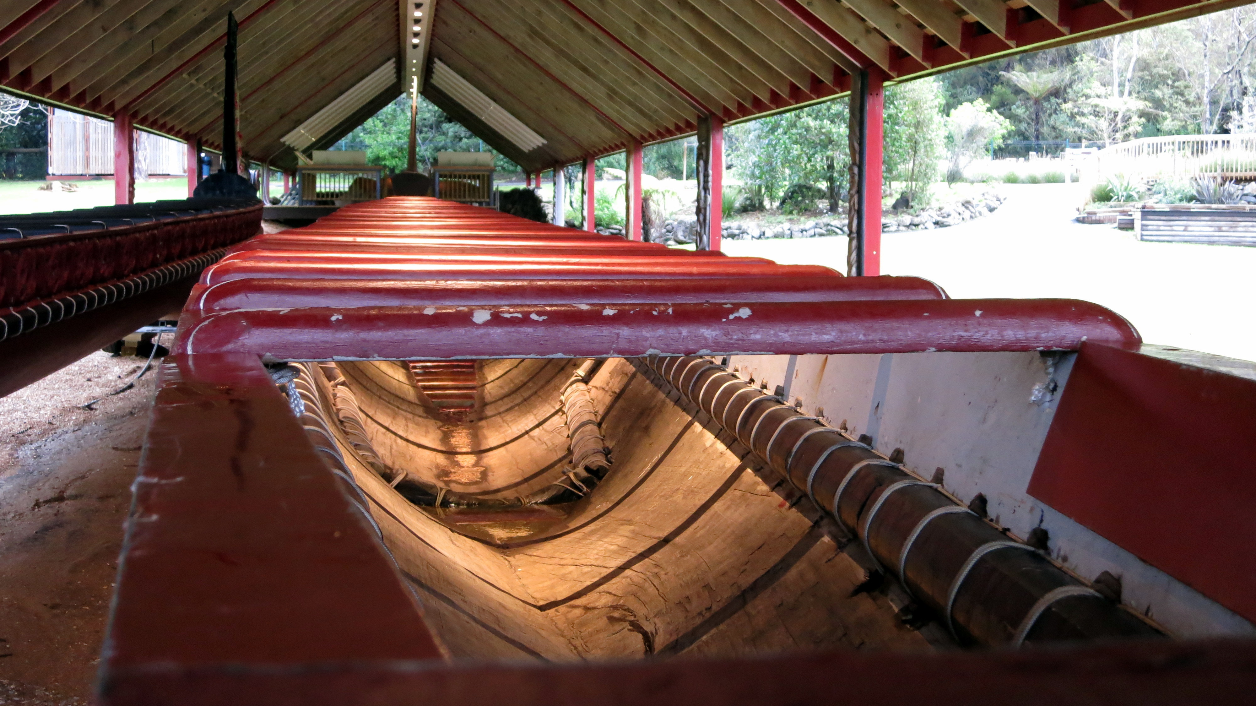 Les pirogues, parfois longues de plus de 80m qui; à l’image de celle-ci, ont permis de rassembler toutes les tribus pour la signature du traité