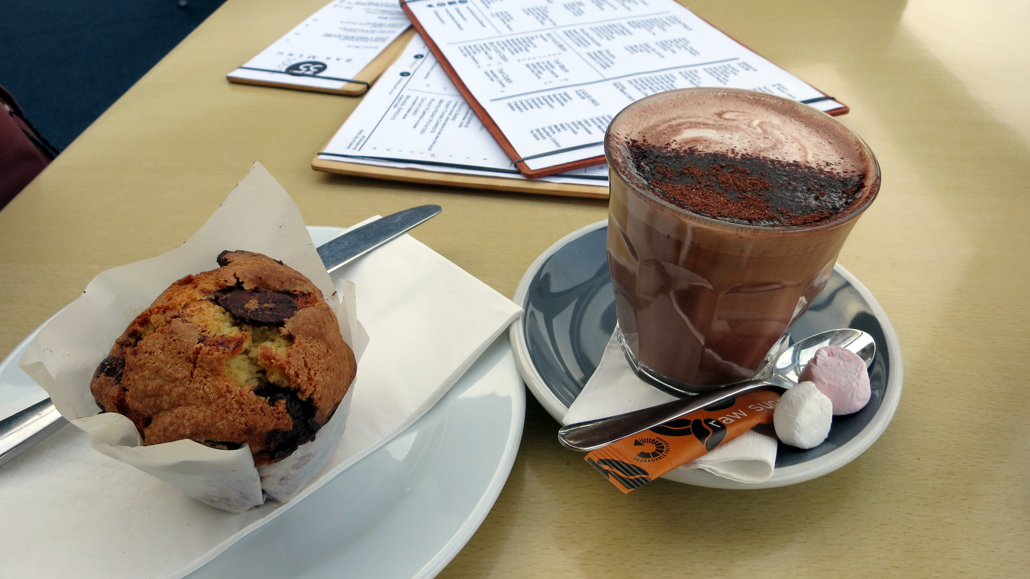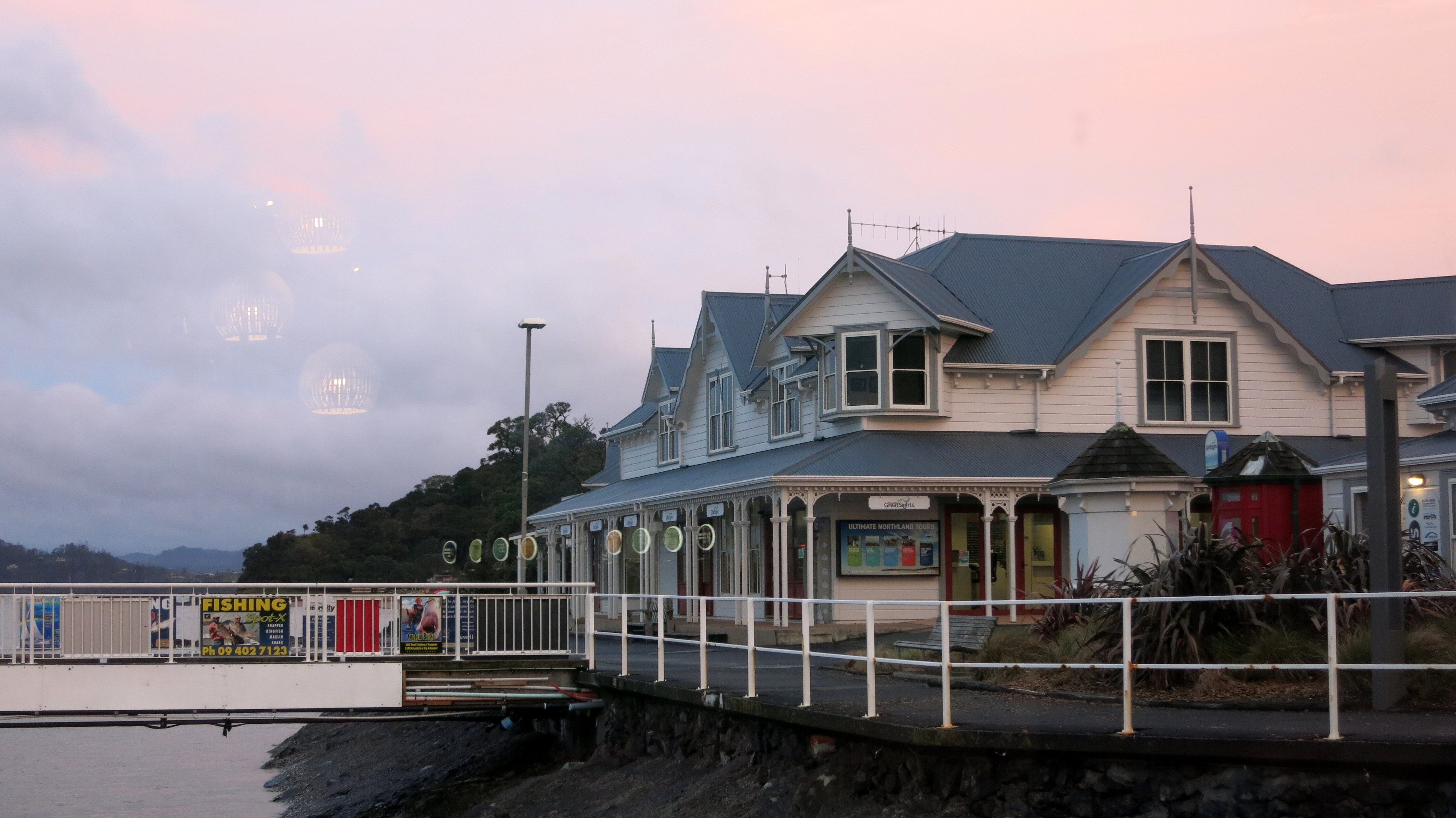 Finalement, j’aurai bien fait de ne pas avoir payé des mille et des cents au musée Maori d’Auckland : l’endroit était bien plus propice à la compréhension de leur culture, et l’atmosphère encore plus significative. En attendant le bus retour, je m’octroie un petit moment privilégié dans un café restaurant flottant, avec chocolat chaud et muffin en guise de dîner anticipé.