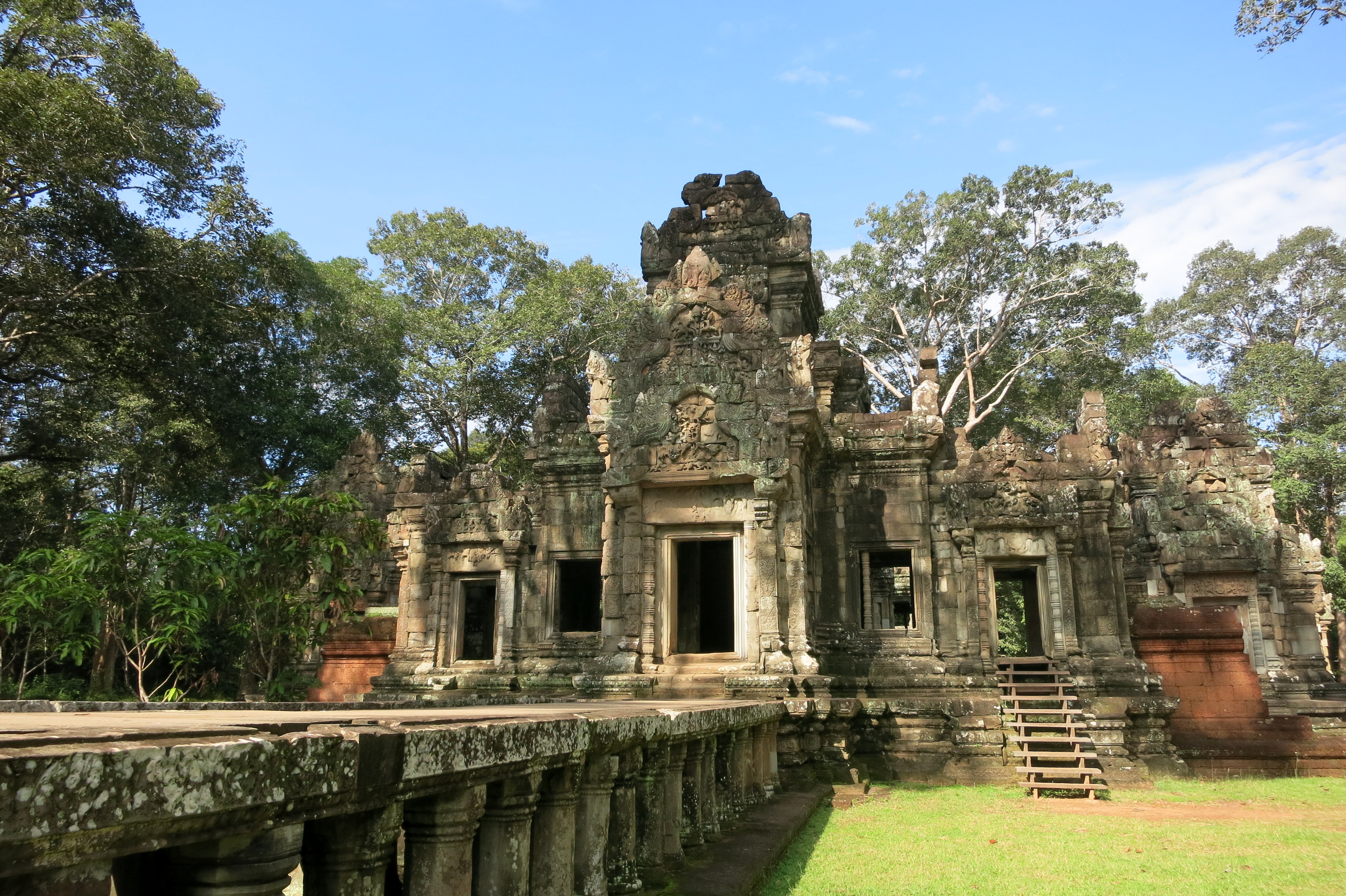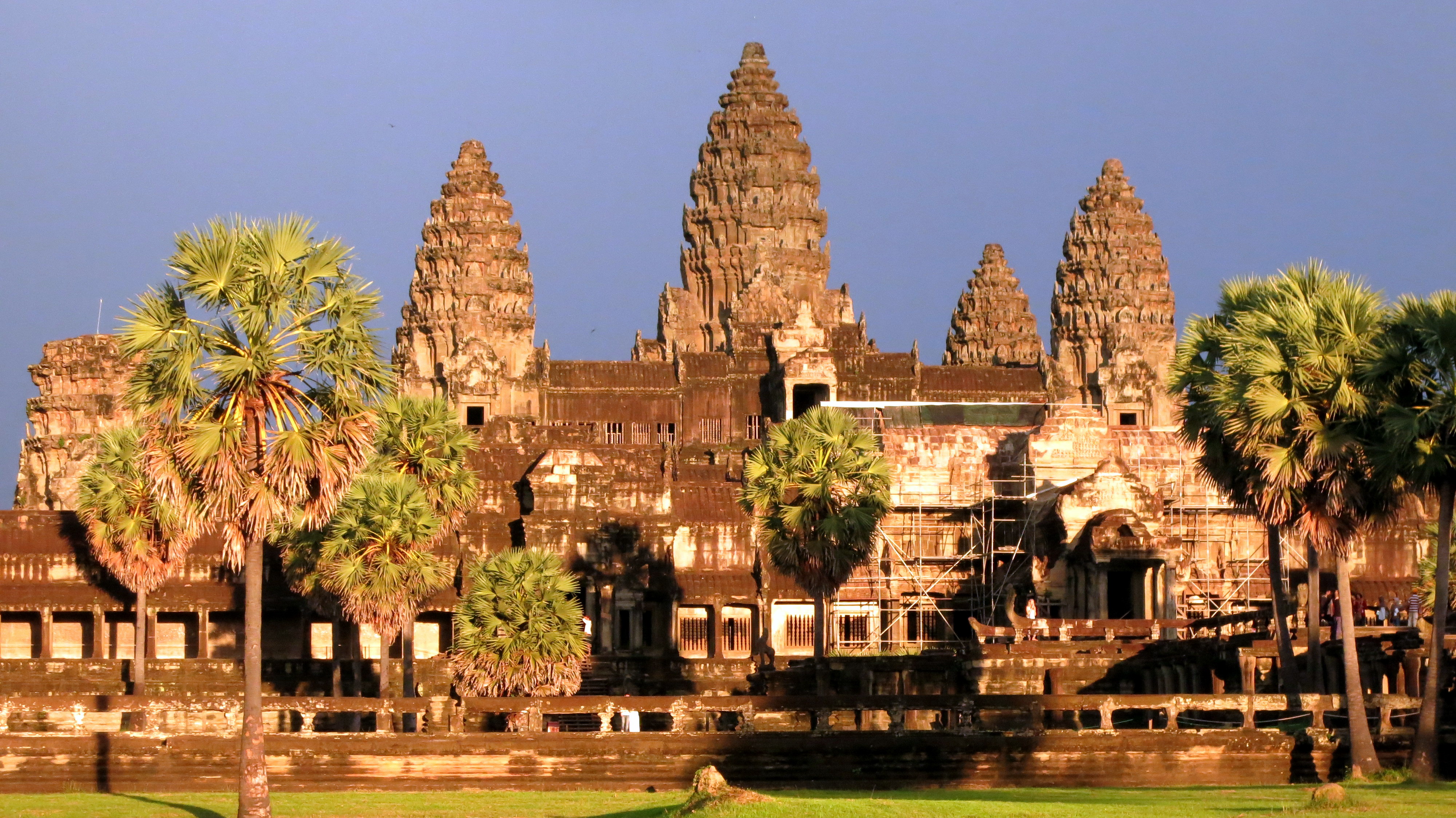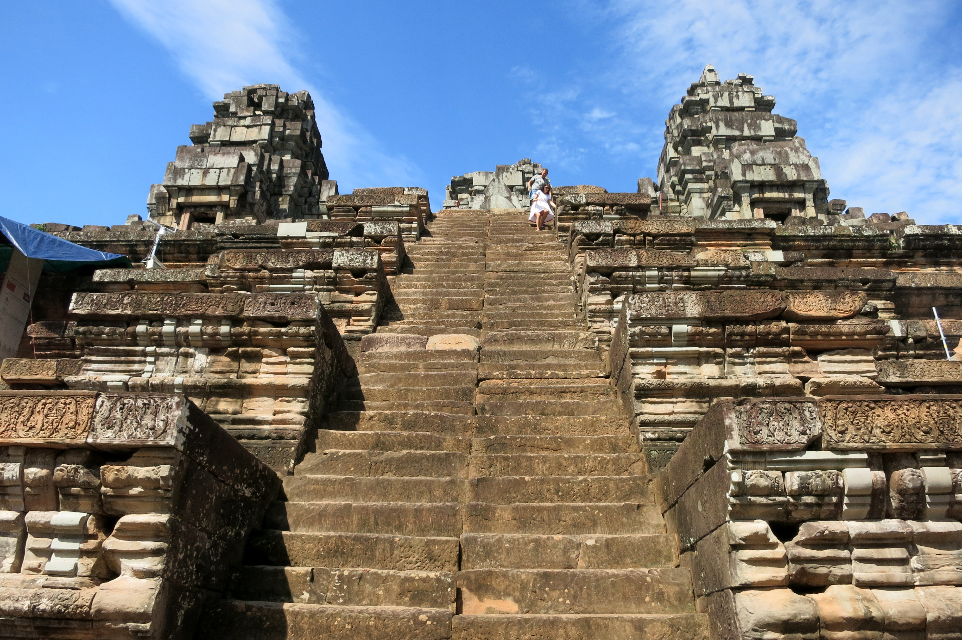Avec les bons conseils de ma RH – toujours bien s’entendre avec les RH – j’ai loué un tuk tuk qu’elle connaissait pour la journée. Objectif numéro un : m’y rendre à 5h du matin pour admirer le lever du soleil sur Angkor Wat, le plus célèbre des temples car synonyme de carte postale et symbole du Cambodge avec une présence sur son drapeau. Bon, cette histoire, c’est comme celle du Machu Picchu : on aura beau le décrire et en raconter chaque détail, c’est l’émotion qui prend le dessus. L’atmosphère ambiante, le changement des couleurs et la lumière progressive qui dévoile la grandeur de l’empire Khmer … Plus grand temple religieux au monde, selon les guides. Effectivement, à en voir le temps passé à le visiter. J’y resterai 2h, sans même m’attarder sur chaque pierre ! Un travail de sculptures murales à couper le souffle. Aucune expertise dans ce domaine, mais pas besoin d’avoir fait un doctorat pour le remarquer 🙂
