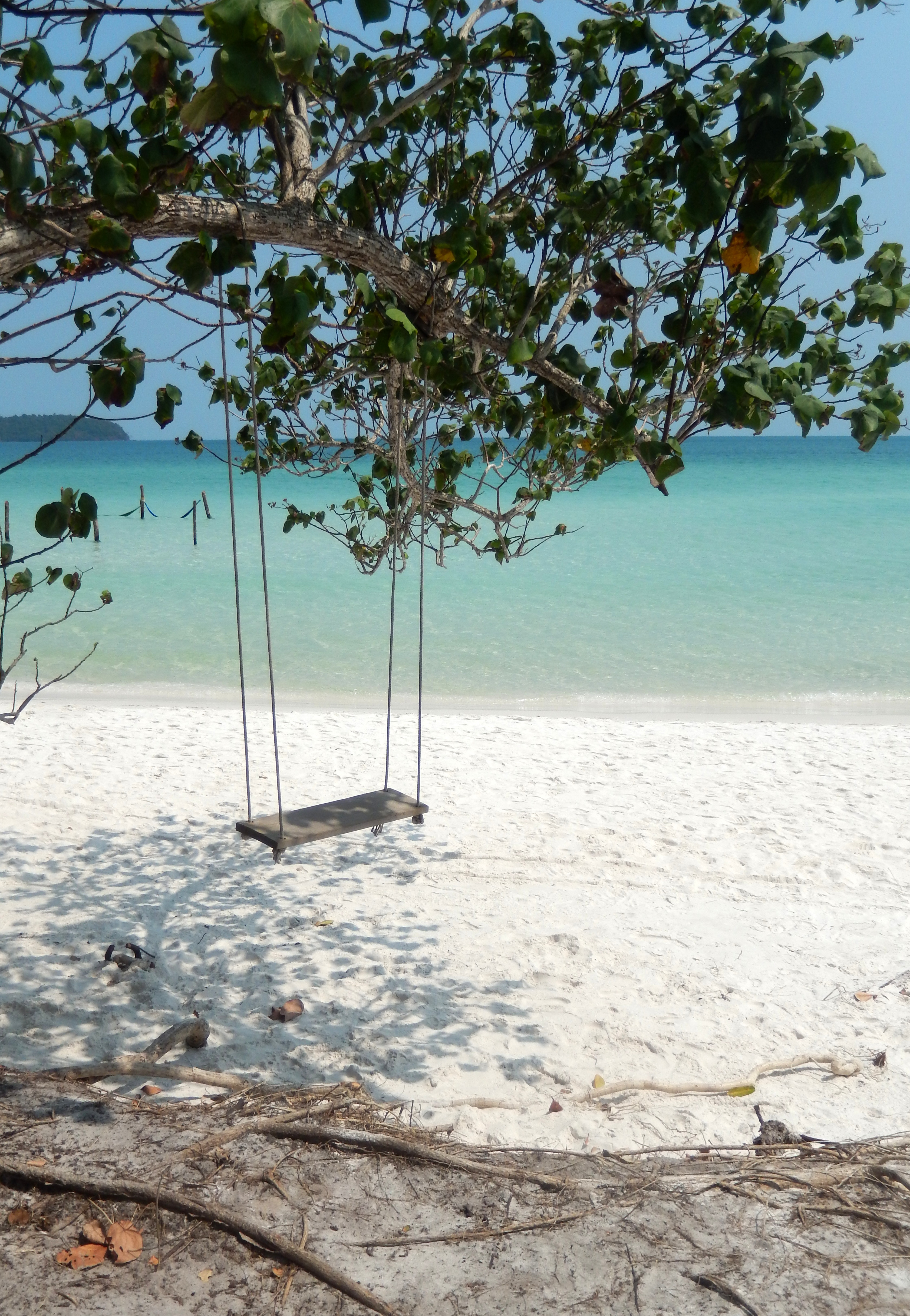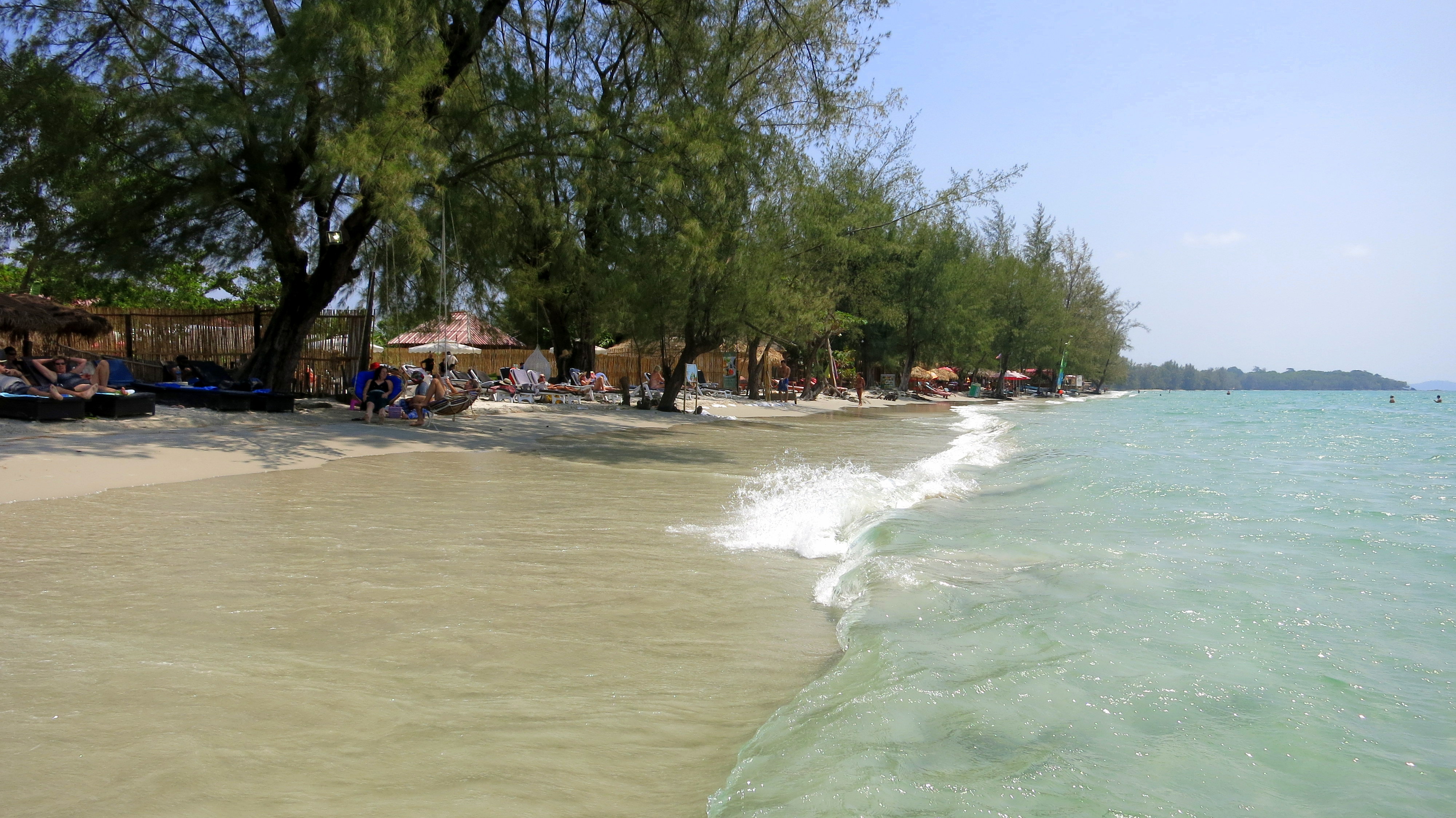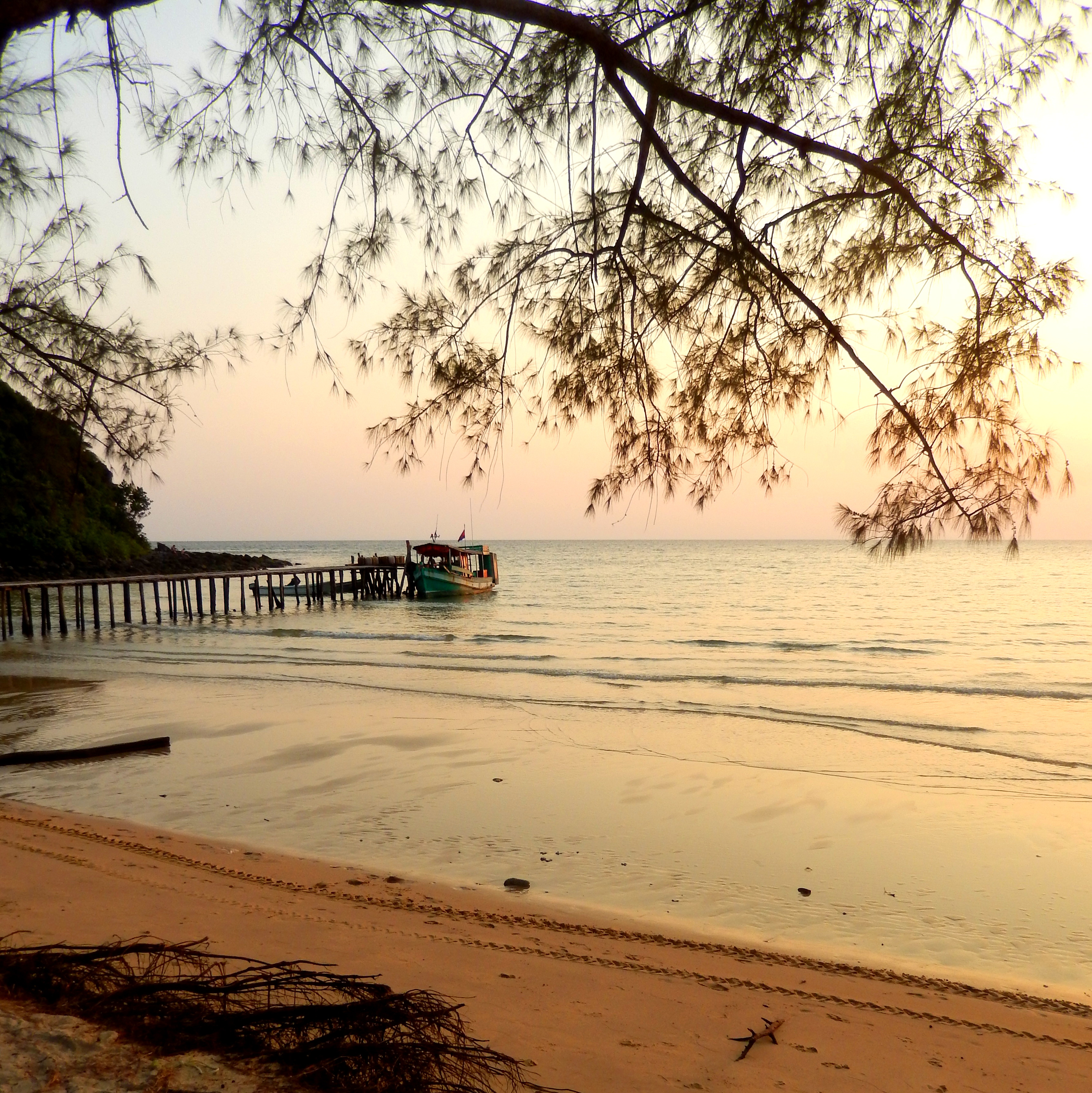 En 40 minutes d’avion, on se prend les pieds dans le sable et hop, déjà bien installés dans notre bungalow sur la côte Sud du Cambodge. Encore relativement bien préservée et presque sauvage, la première étape sera un arrêt d’une nuit à Otres Beach. Point d’île à ce niveau, mais quand même beaucoup d’eau. Jamais je ne me suis baignée dans une eau si chaude, de mémoire. Et pourtant, je commence à en compter pas mal, des jolies plages …