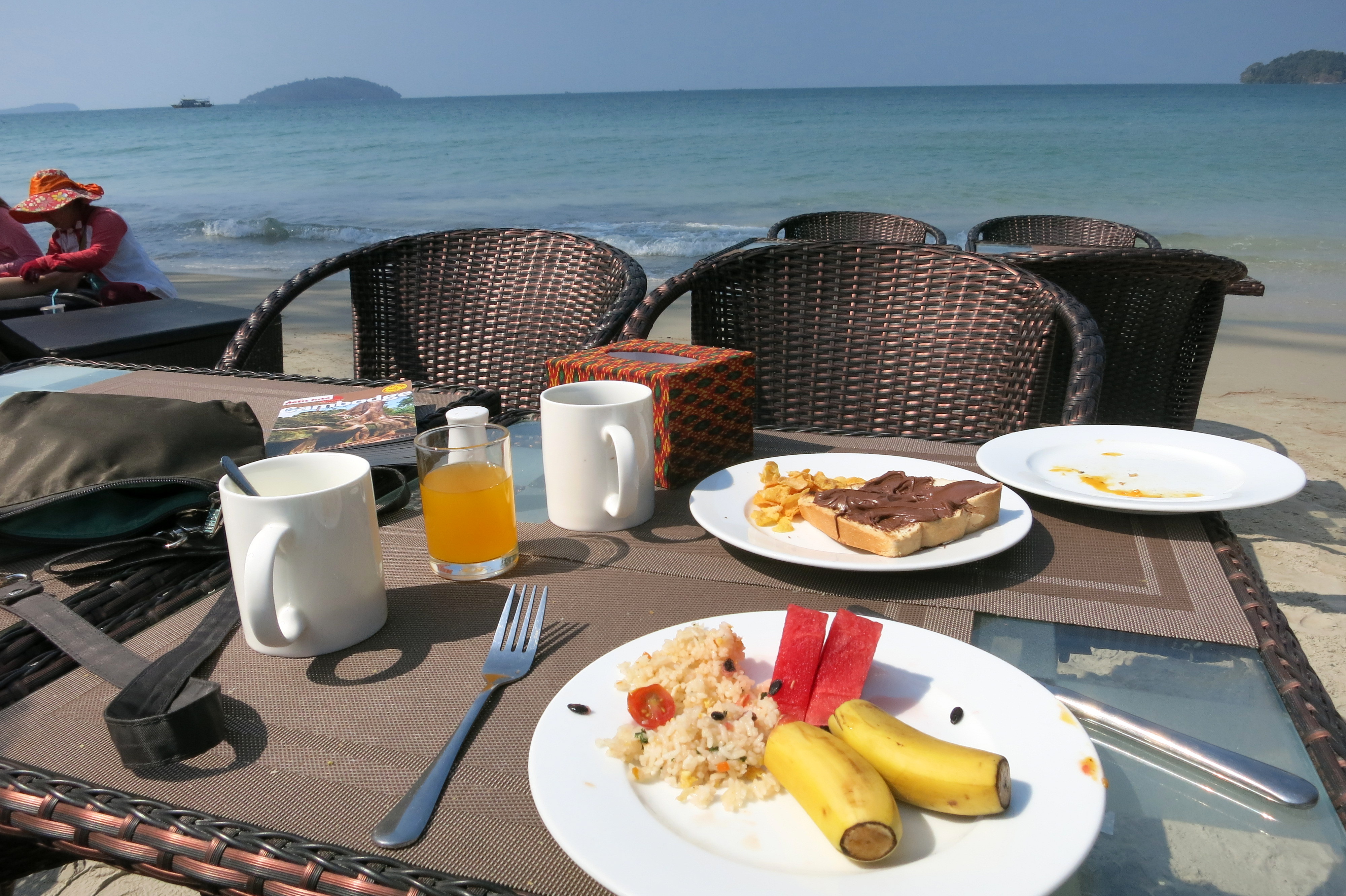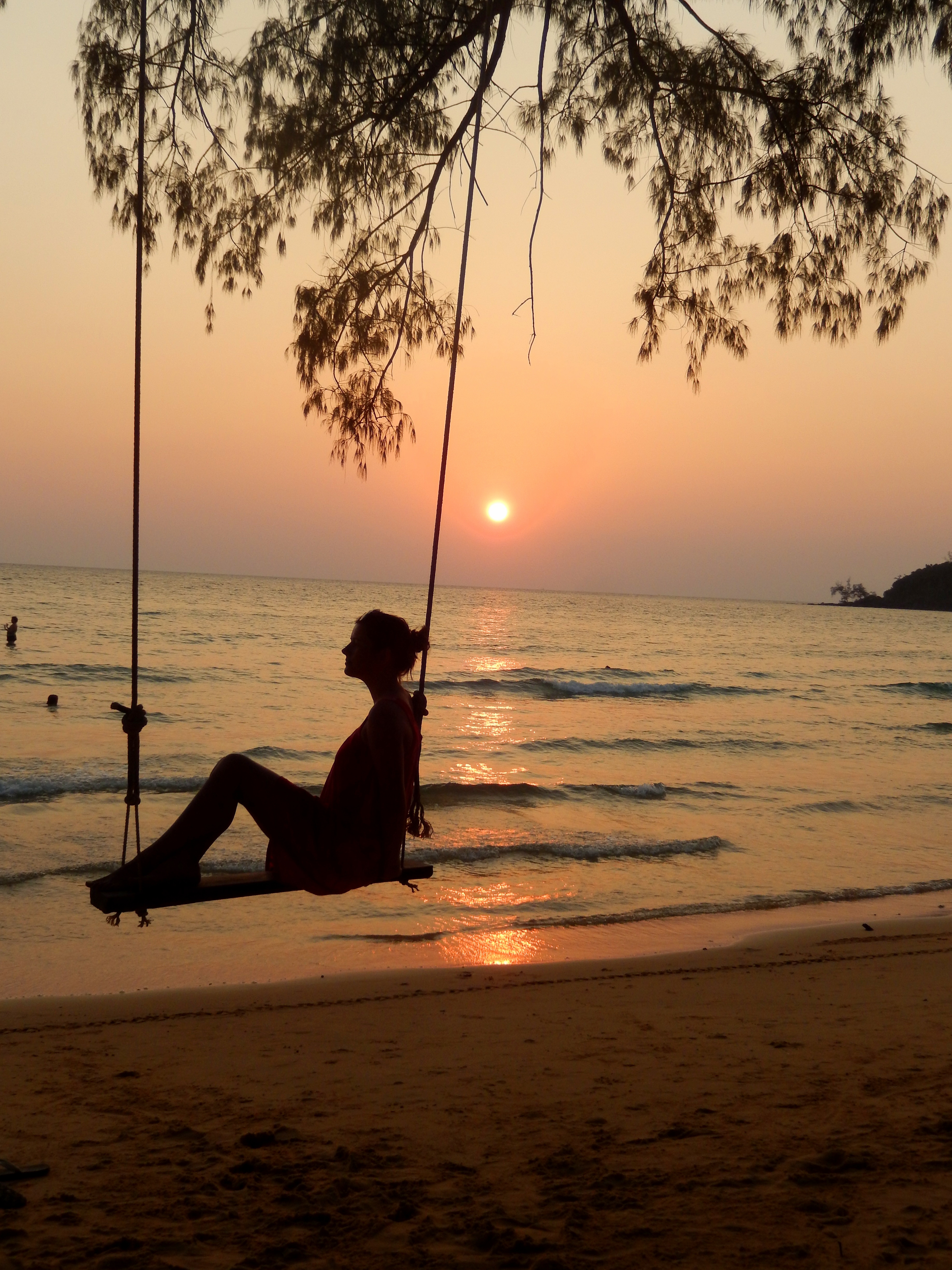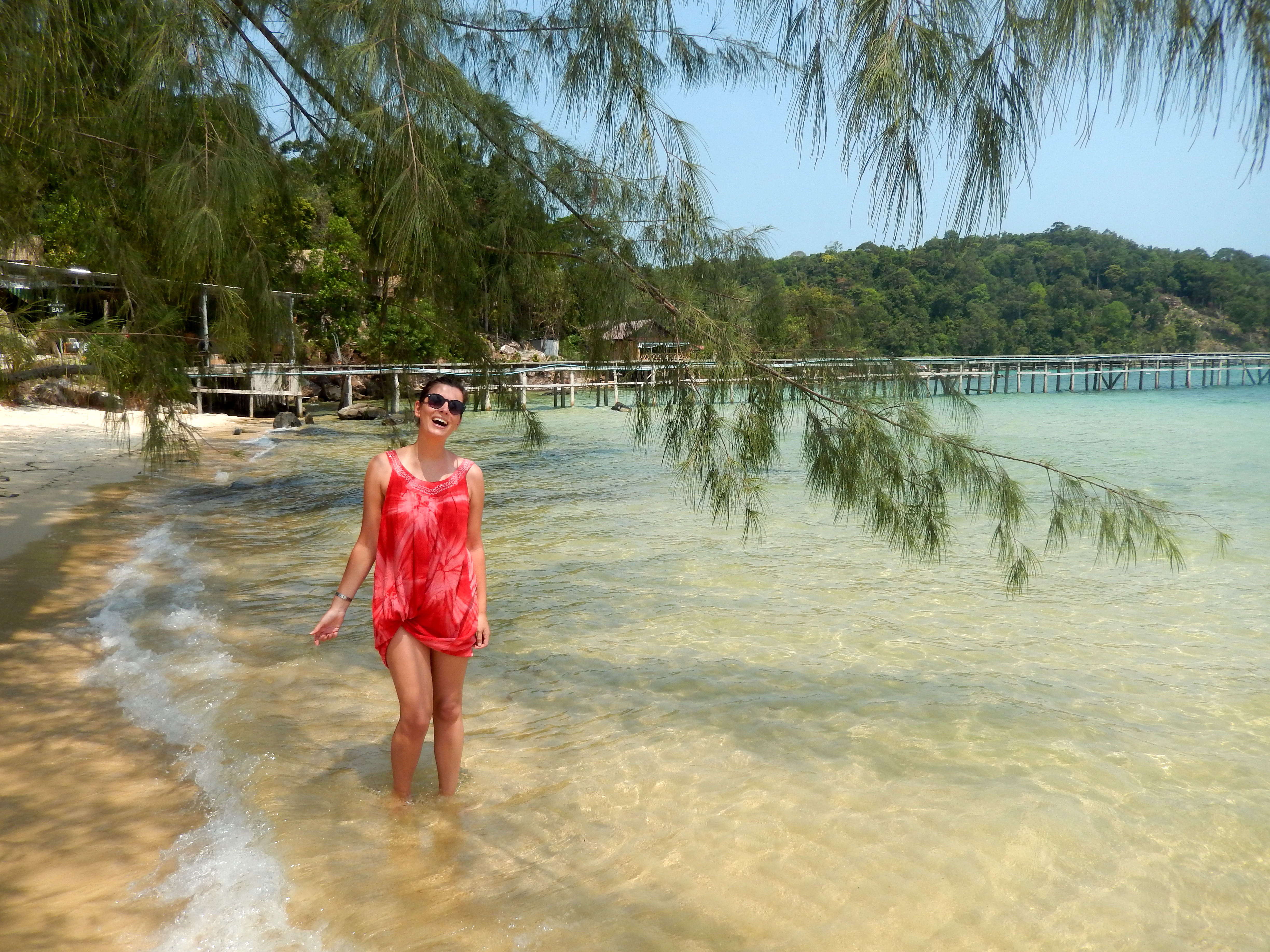 En 40 minutes d’avion, on se prend les pieds dans le sable et hop, déjà bien installés dans notre bungalow sur la côte Sud du Cambodge. Encore relativement bien préservée et presque sauvage, la première étape sera un arrêt d’une nuit à Otres Beach. Point d’île à ce niveau, mais quand même beaucoup d’eau. Jamais je ne me suis baignée dans une eau si chaude, de mémoire. Et pourtant, je commence à en compter pas mal, des jolies plages …
