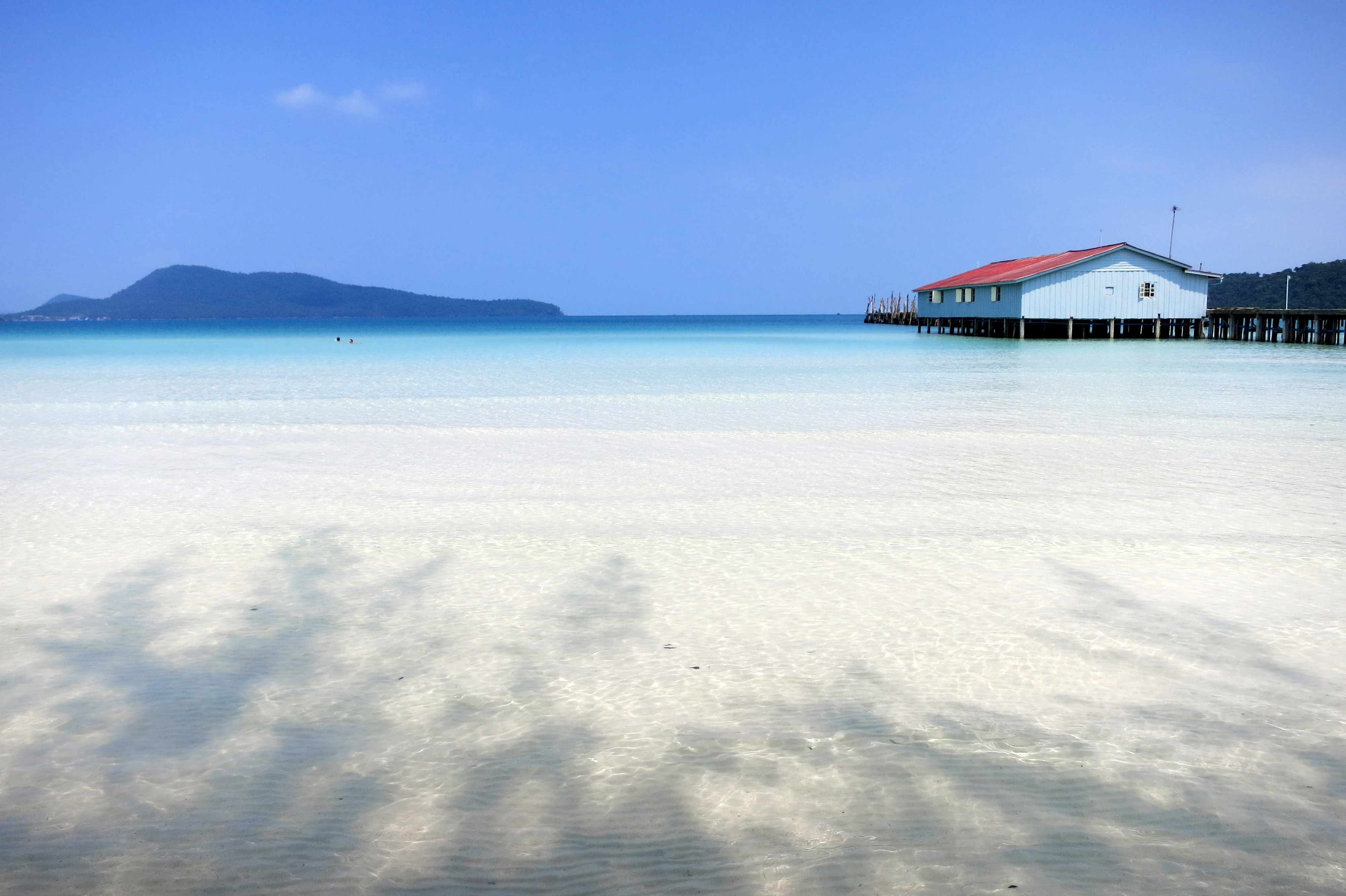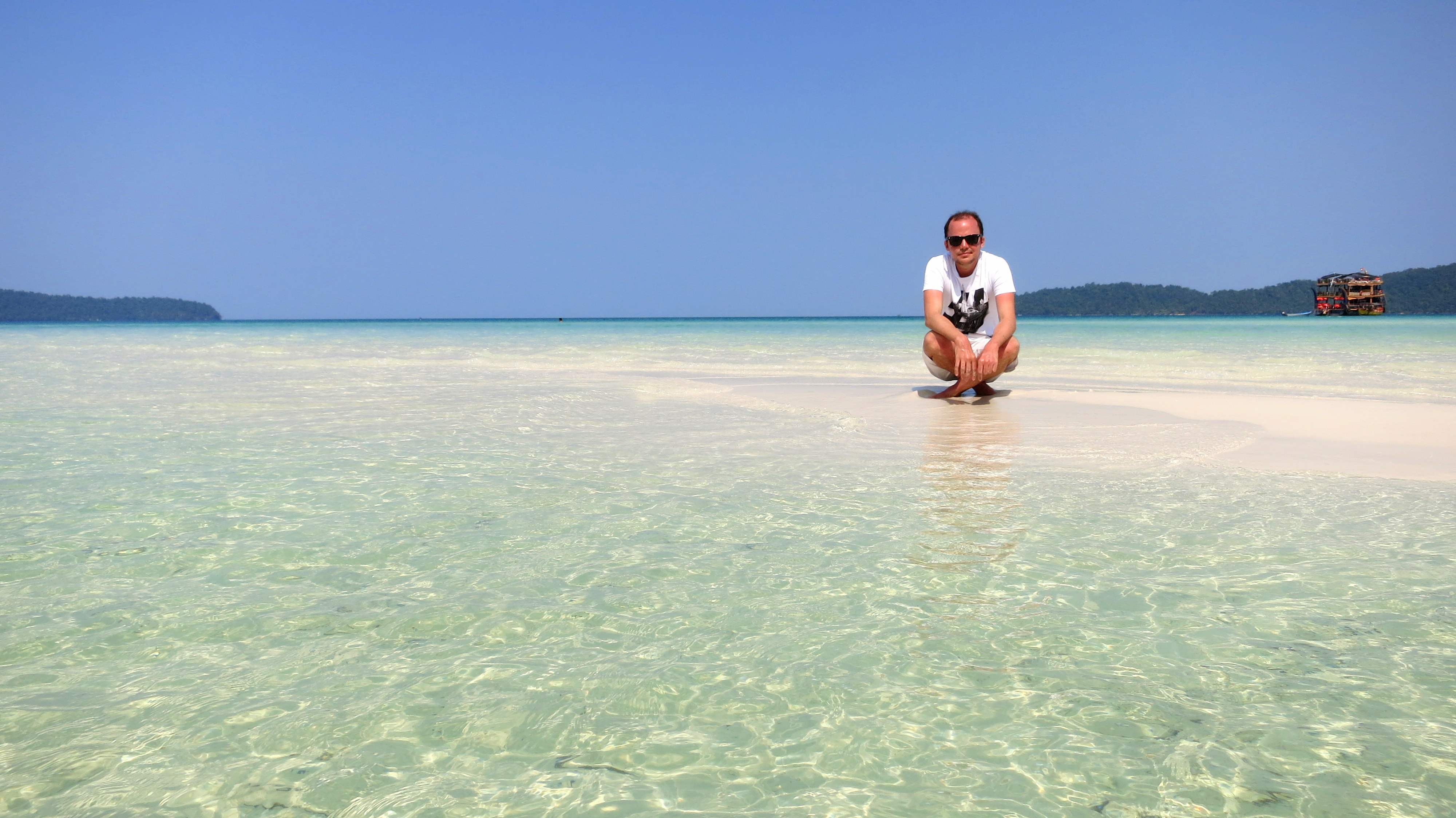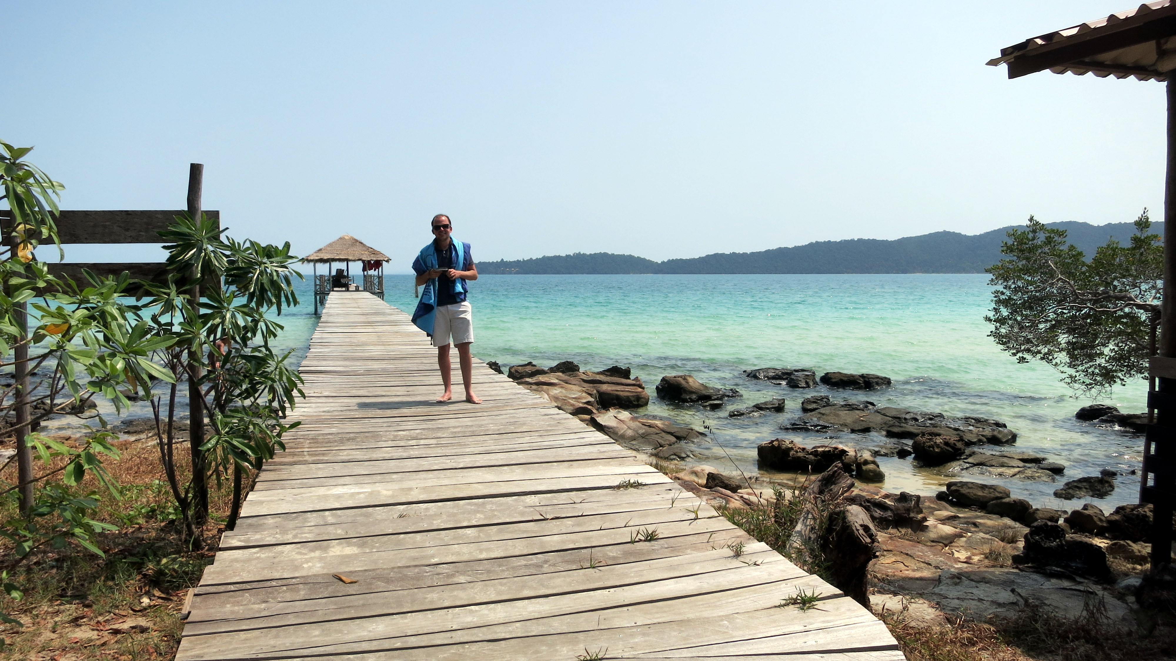 Petit déjeuner passé entre coconuts et crustacés, et c’est nous qui cuisons dès les premières minutes au soleil. En fin de matinée, direction le centre de Sihanoukville (où il n’y a strictement RIEN à faire, à part acheter du matériel de camping et des tongs en vue de pavaner sur les îles) et le ponton menant au paradis.