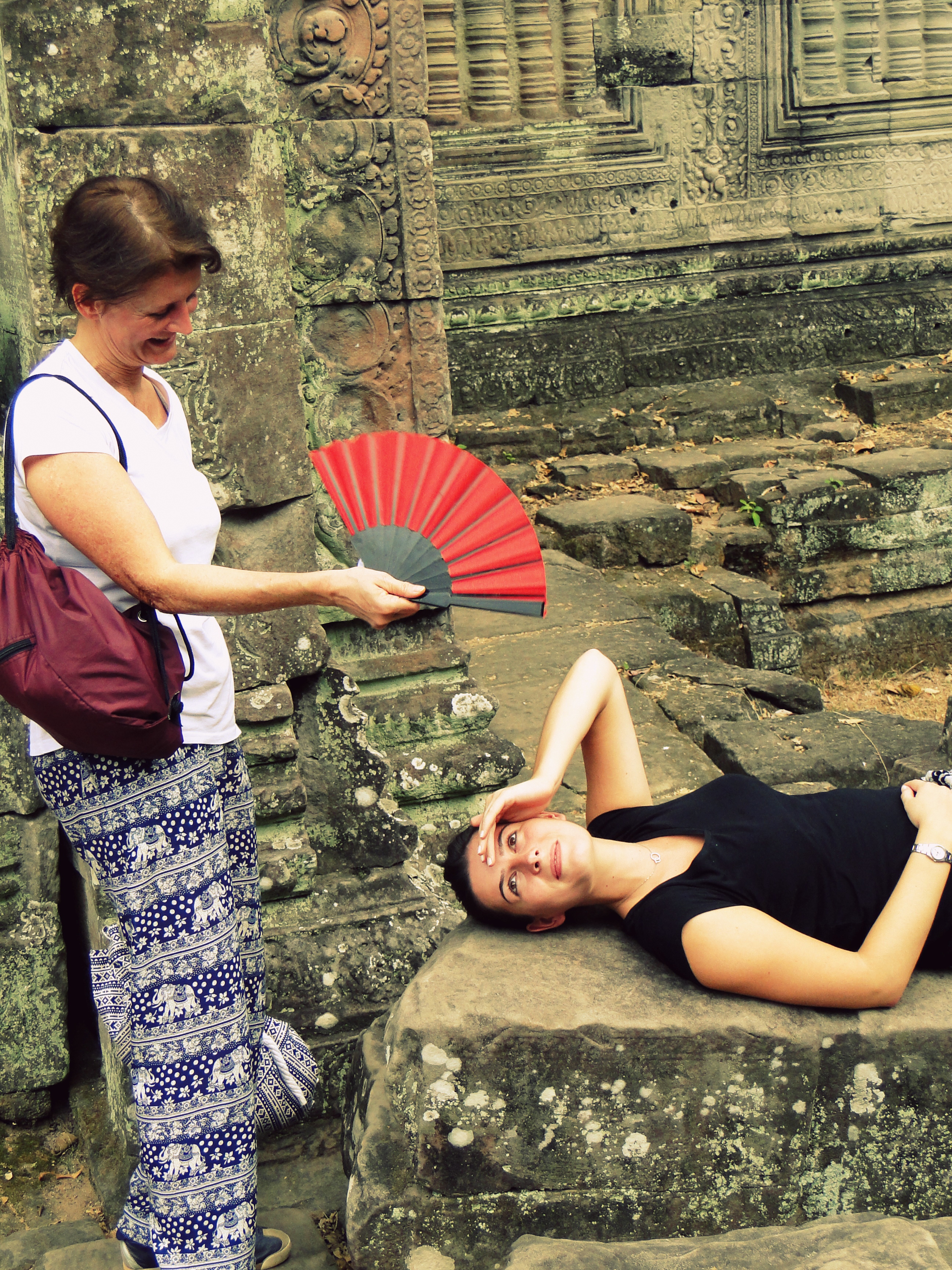 …qui aurait prédit que tant de gens seraient de passage en si peu de temps ? Vu, la famille, et encore… je ne parle même pas des amis ! Alors un grand, grand, MERCI pour ces moments ! Sans doute bien inutiles à conter puisque vous avez, pour la plupart, tous partagé mon mode de vie, et vous êtes rendus dans les endroits que je tenais tant à vous faire découvrir. Un petit peu de vie locale, beaucoup de bons plans d’expats, une overdose de temples et quelques recoins de campagne…ce qui est certain, c’est que le Peace Café n’a plus de secret pour personne, que les massages ont été expérimentés par tous au moins une fois (si ce n’est deux), et que l’incruste dans un 5 étoiles avec piscine à systématiquement été honoré. Les plus chanceux auront fait du Yoga (coucou cousin), la jeunesse Pub Street et ses nuits bruyantes en complément. Mention spéciale tout de même aux grands parents, qui, du haut de leurs 80 ans, auront bravé l’empire Khmer sous une forte chaleur et gravi les marches pentues des temples d’Angkor !