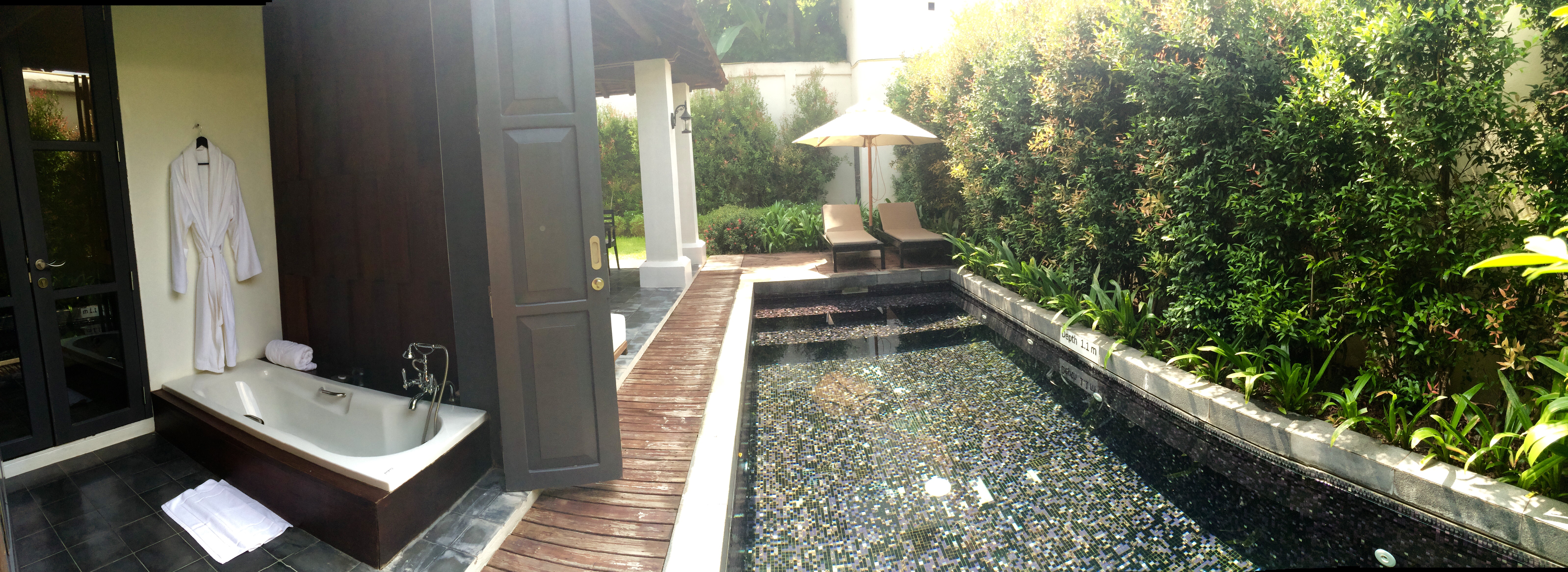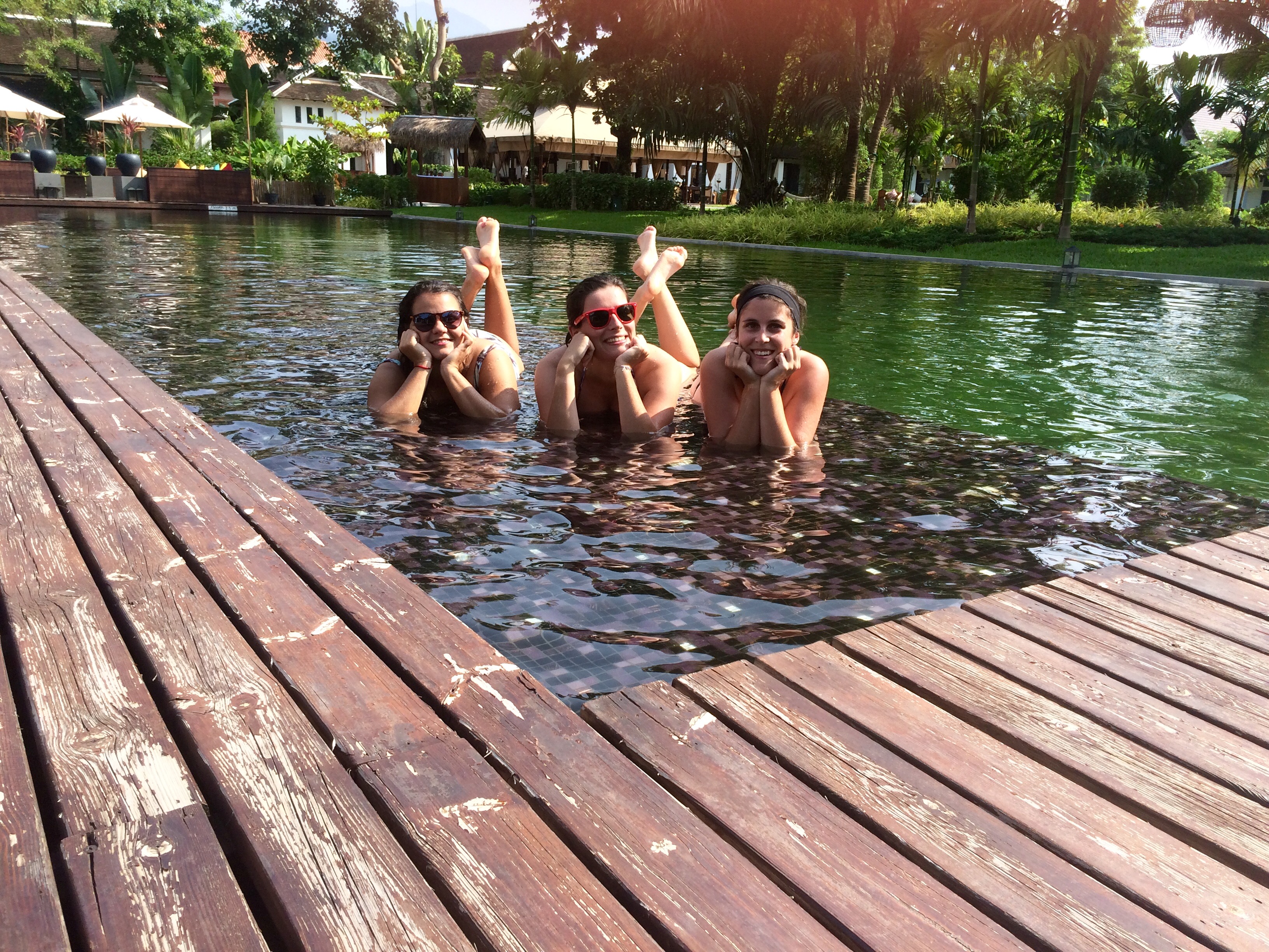 Sinon sinon, et comme vous l’avez sans doute déjà vu, on a aussi décidé de ne rien faire. Se dorer la pilule et poireauter dans l’eau en attendant nos cocktails fait maintenant partie de nos indispensables à chaque vacances. Luang Prabang était non seulement notre point de départ de cette semaine de dingue, mais aussi notre dernière étape du séjour après quelques escapades sauvages effectuées plus au Nord du pays. Au retour de trois jours passés dans un confort plus que sommaire, les standards Sofitel et nous ont fait grand bien. Accueil royal du manager de l’hôtel que Camille connaît déjà bien – forcément, en étant dans la même promo et parmi ses amis proches, l’accueil ne pouvait qu’être exceptionnel.Sans commentaire la vie d’expatriée, sous peine de toujours un peu plus vous ennuyer..! 🙂.