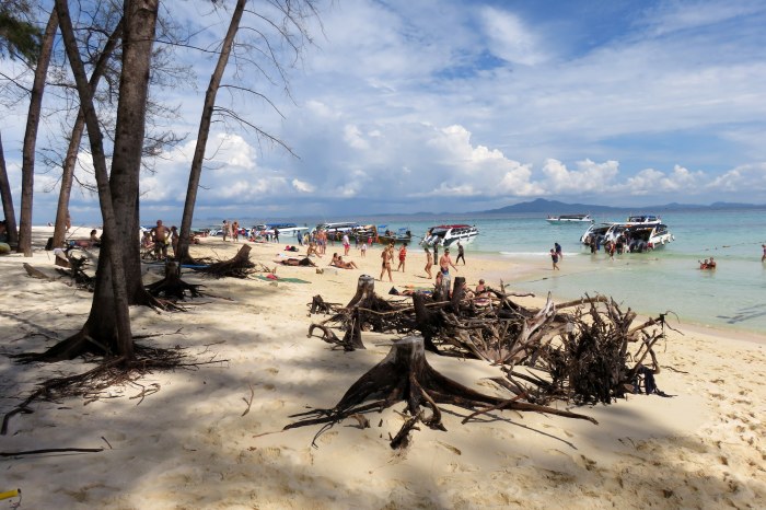 Une journée bookée dont on devine le programme attrape-touristes. L’objectif est clairement de se pavaner sur les plus beaux îlots et de visiter ce qui se doit de l’être : plages, snorkeling, îles aux alentours. Honnêtement, on ne peut pas cracher dessus malgré tout le mal que l’on a pu entendre sur l’overdose de tourisme dans les îles : c’est quand même pas dégueu dégueu, tout ce soleil.