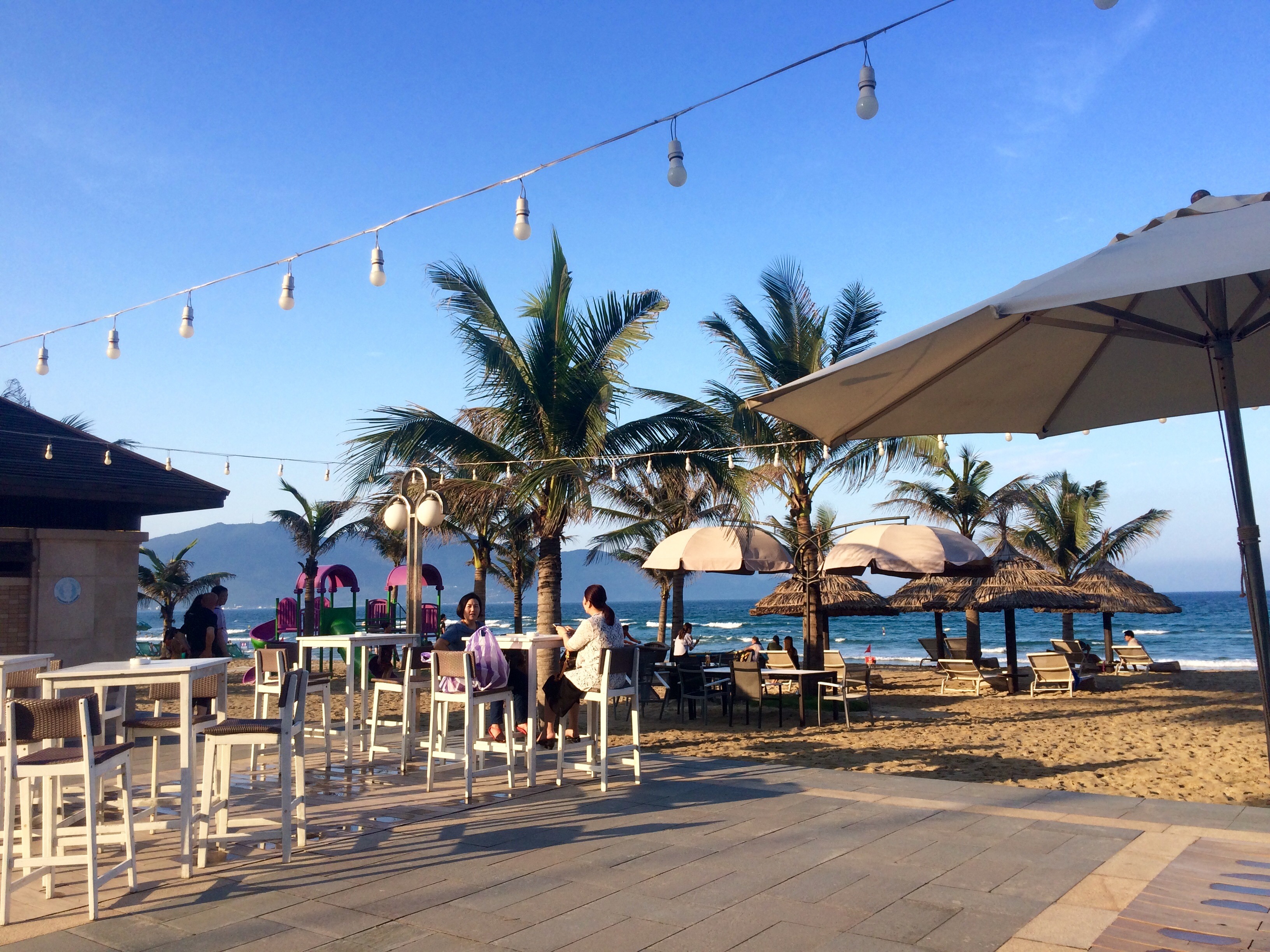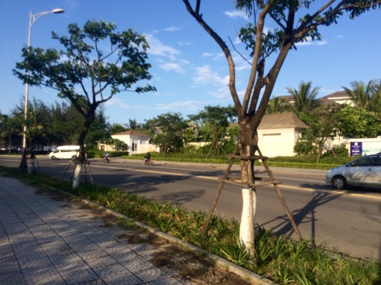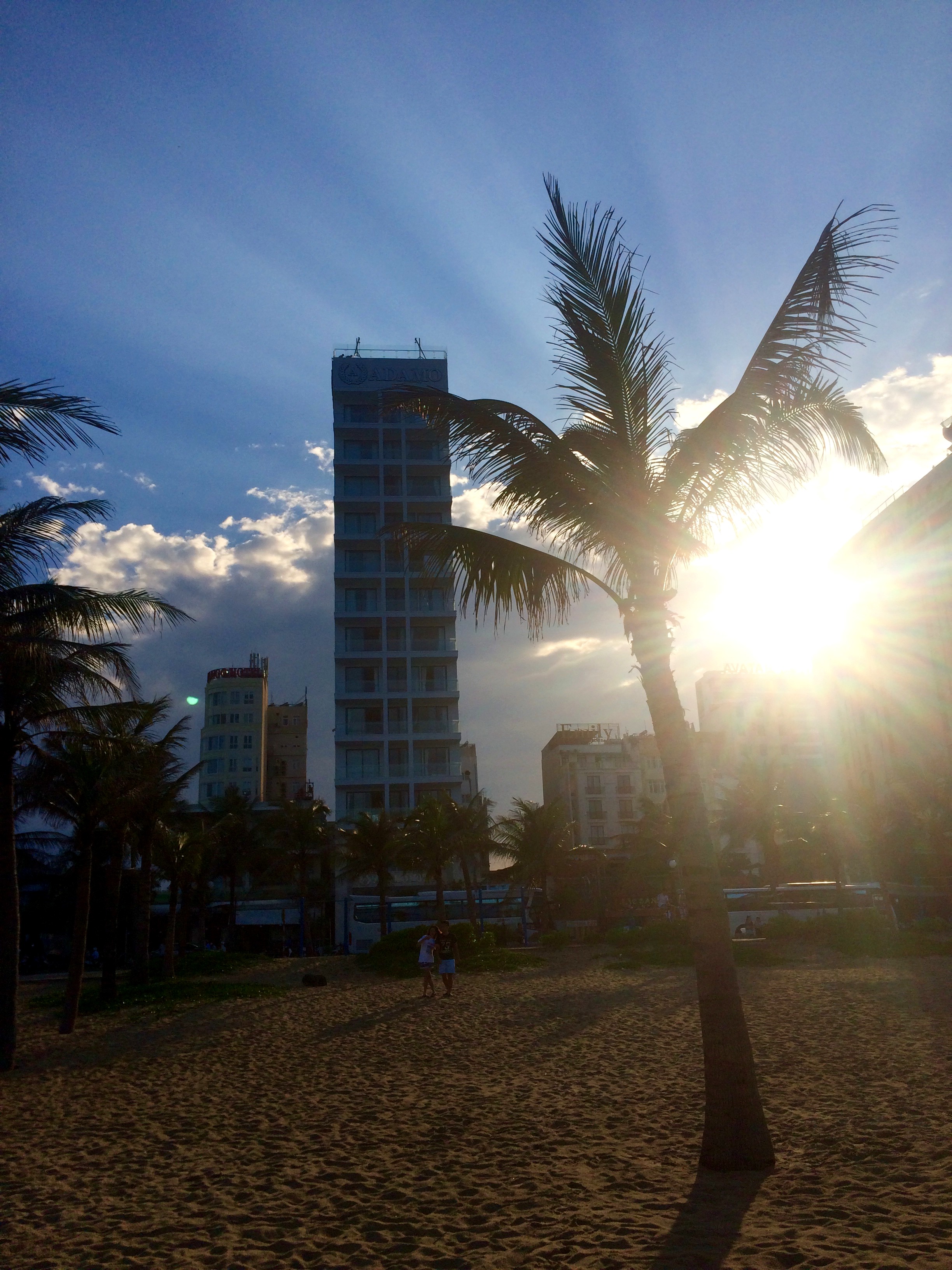 Je confirme aussi que le Vietnam est synonyme de GROS bordel, de milliers de scooters, d’un milliard de taxons, d’une circulation qui ne s’est pas améliorée en dix ans (cf mon séjour à Hanoi en 2007, same same but …not even different) et de petits défis intéressants lorsqu’il s’agit de traverser n’importe quelle rue. Il y a une différence fondamentale de développement avec ses pays voisins, et la pauvreté ne se voit quasiment plus. Cela dit, Danang regorge aussi de petites rues fleuries avoisinant la plage principale où touristes et locaux se mélangent. Quelques photos sympa prises au coucher du soleil et à mon retour, enjoy.Aux abords de la plage et dans le centre ville