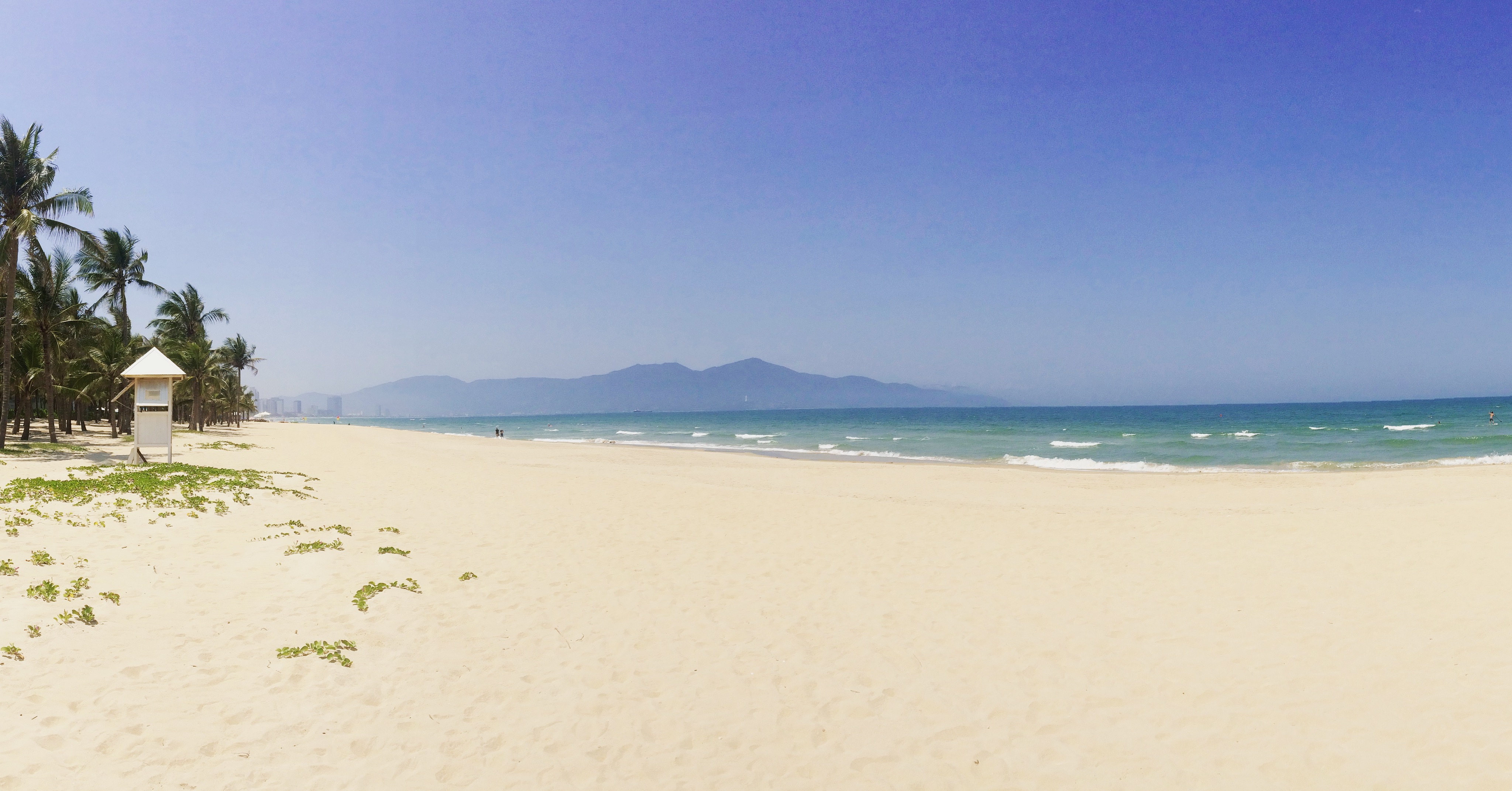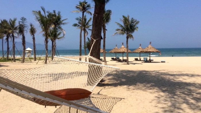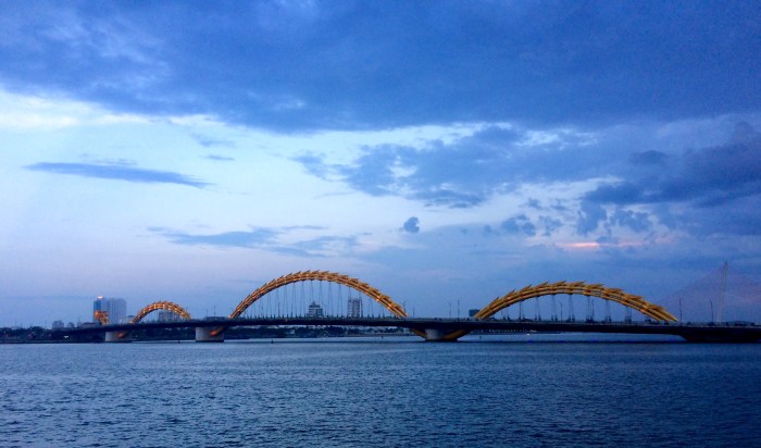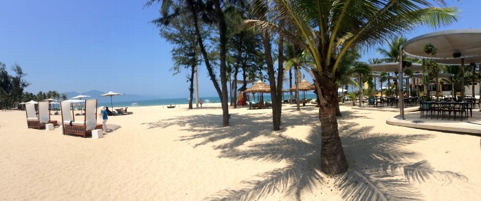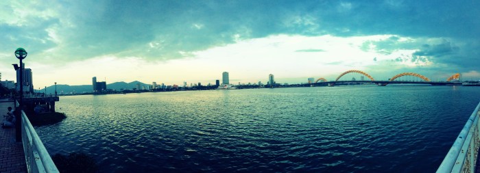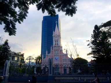 Anyway, pas grand chose à voir à Danang. Une petite cathédrale rosée, un marché traditionnel qui n’a rien de plus que les centaines d’autres déjà visités partout dans le monde, une traversée de la rivière sur le fameux pont du dragon qui crache du feu la nuit, et enfin quelques foulées dans le sable pour y laisser mon empreinte et dire que j’aurai fait les plages de Danang. Ces dernières sont, à l’instar de Hoi An jolies avec de beaux horizons, néanmoins rien d’extraordinaire encore une fois. Cela est suffisant pour bronzer et prendre de belles couleurs ceci dit 😉 La plupart des touristes ou expats’ font en fait halte à Danang pour faire du shopping, un peu comme Bangkok. On y trouve de tout, à la fois des marques locales comme internationales. Il est vrai que tout de suite, ça met du baume au coeur de voir une petite boutique Zara à l’angle de la rue. Oui mais là, tout de suite, je n’ai plus d’économies ni de place dans les bagages, je passerai mon chemin.