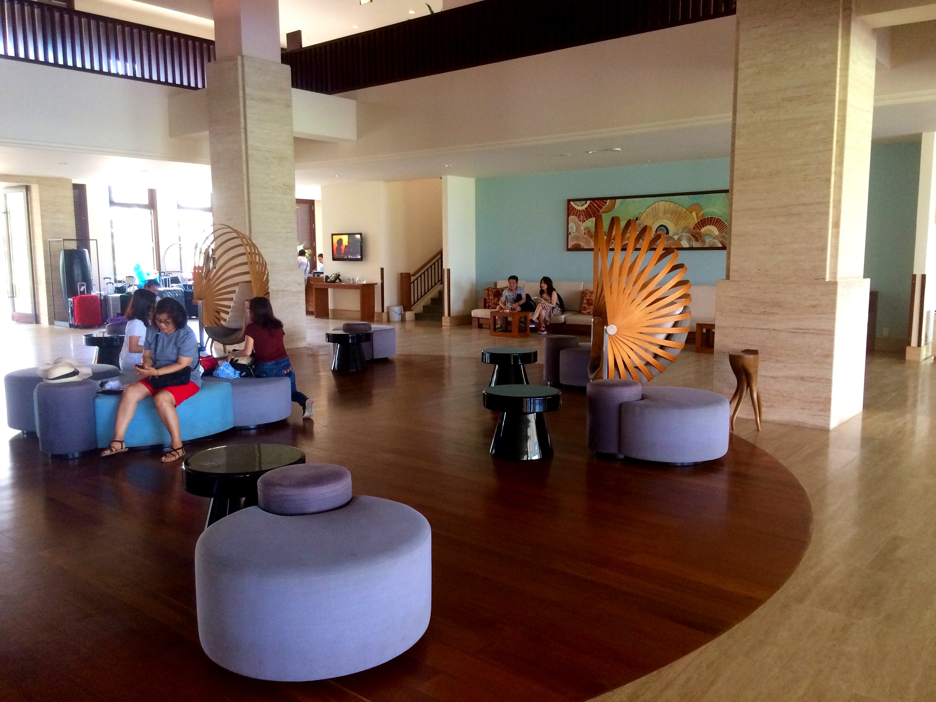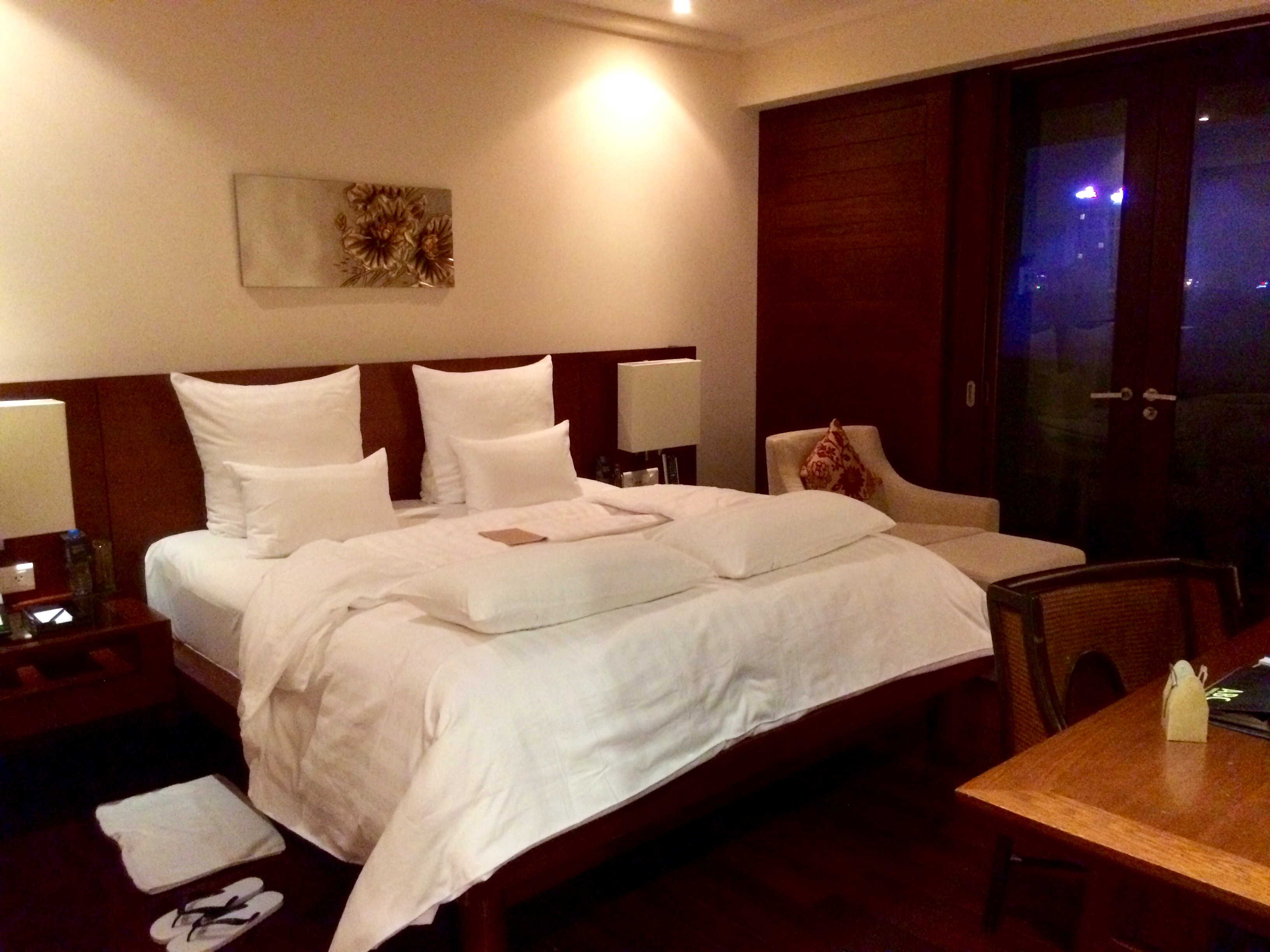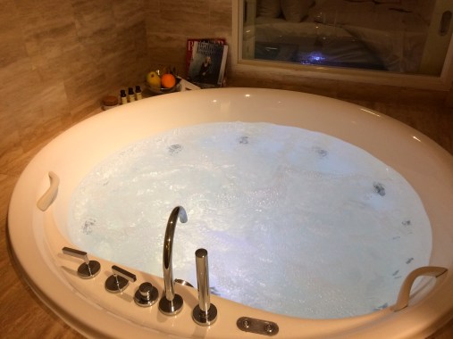 J’imagine que mes économies effectuées durant ma semaine en auberges me permettront de finir en apothéose : une jolie nuit au Pullman 5 étoiles que j’aurai pris soin de réserver via des collègues. A un tarif défiant toute concurrence, j’aurai touché le gros lot. Une nuit courte, certes, mais de quoi profiter en journée. Qu’il est bon de retrouver du confort, avec des gens qui sont là pour vous aider à tirer vos 50 kg de bagages ! 😀 Accueil VIP, surclassement dans la plus grande suite de l’hôtel (no comment), boisson au bar offerte …que d’attention pour une petite RM. Moi qui pensais profiter humblement, je me retrouve dans une suite de 130m carrés pour moi toute seule. Autrement dit l’indécence qui atteint son paroxysme.