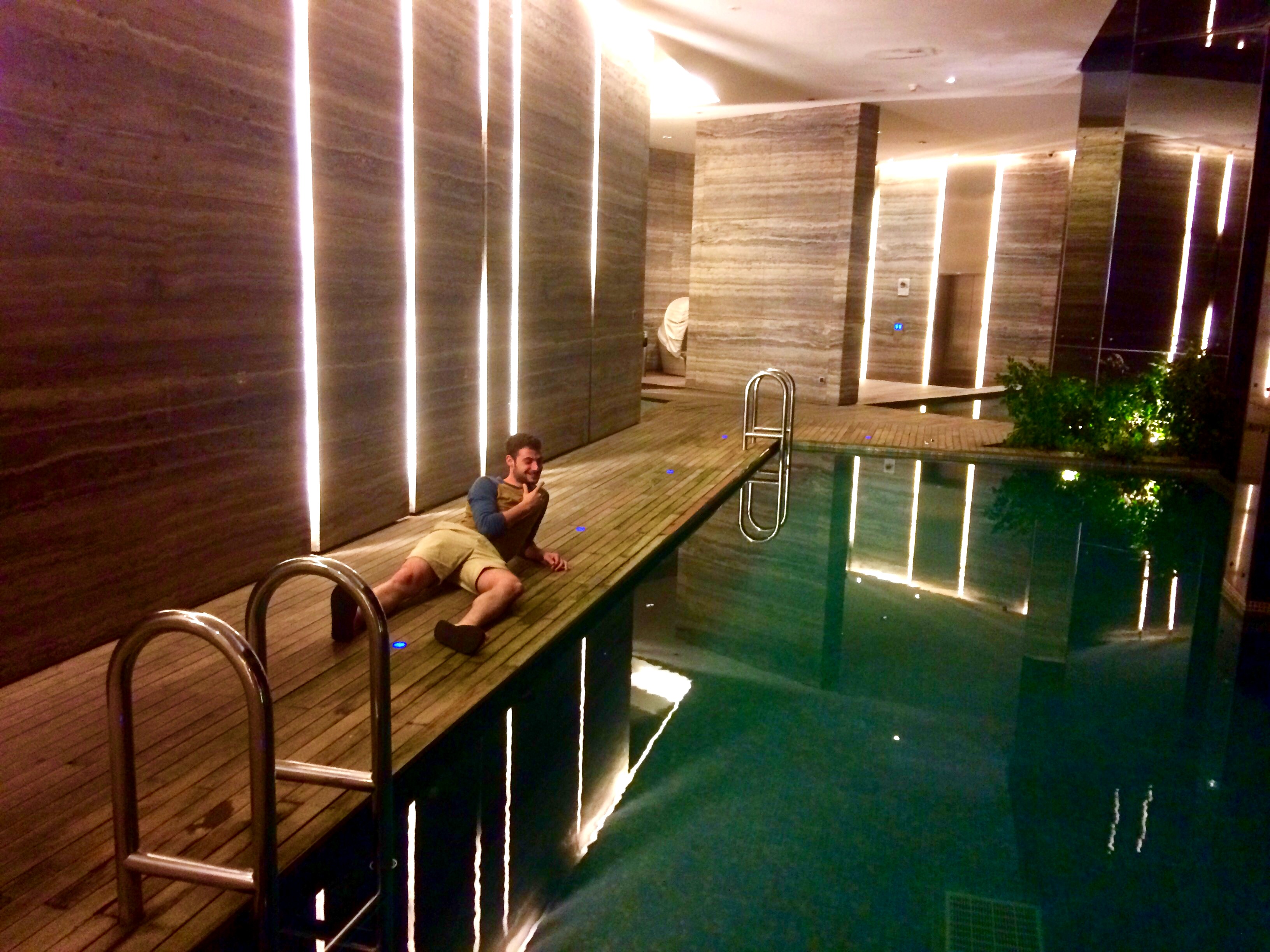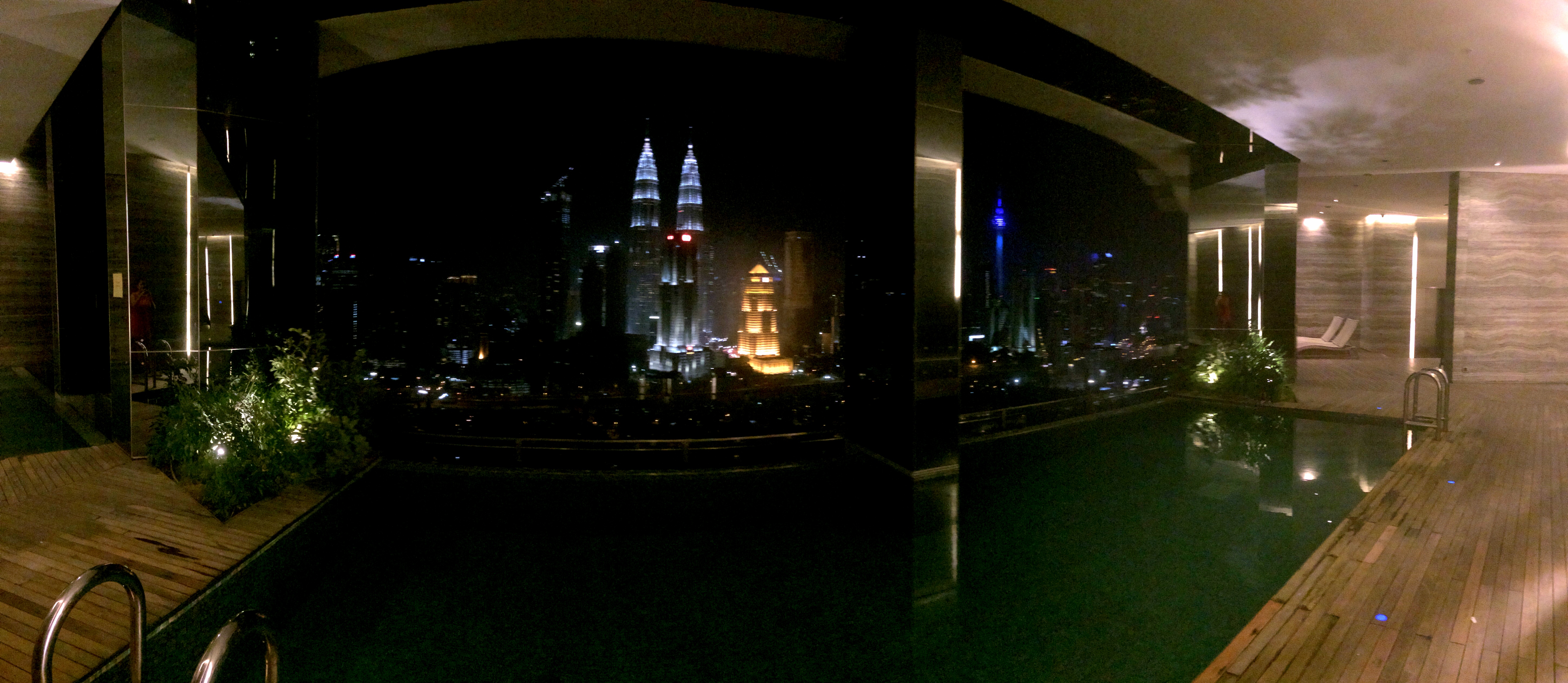 Je suis rentrée légèrement lessivée, prête à aller me coucher, jusqu’à ce que, tenez-vous bien, mon cher cousin réagisse à une photo postée sur ma présence à KL, m’annonçant qu’il y est aussi pour 5 jours avec ses copains d’école. Hop, taxi taxi, 20 minutes plus tard je me retrouve dans un building à l’image de ces condos Singapouriens, avec Pierre et ses potes qui ont loué un Air BNB à un prix totalement indécent. Presque digne d’un 5 étoiles, la vue sur les tours et la piscine à débordement.